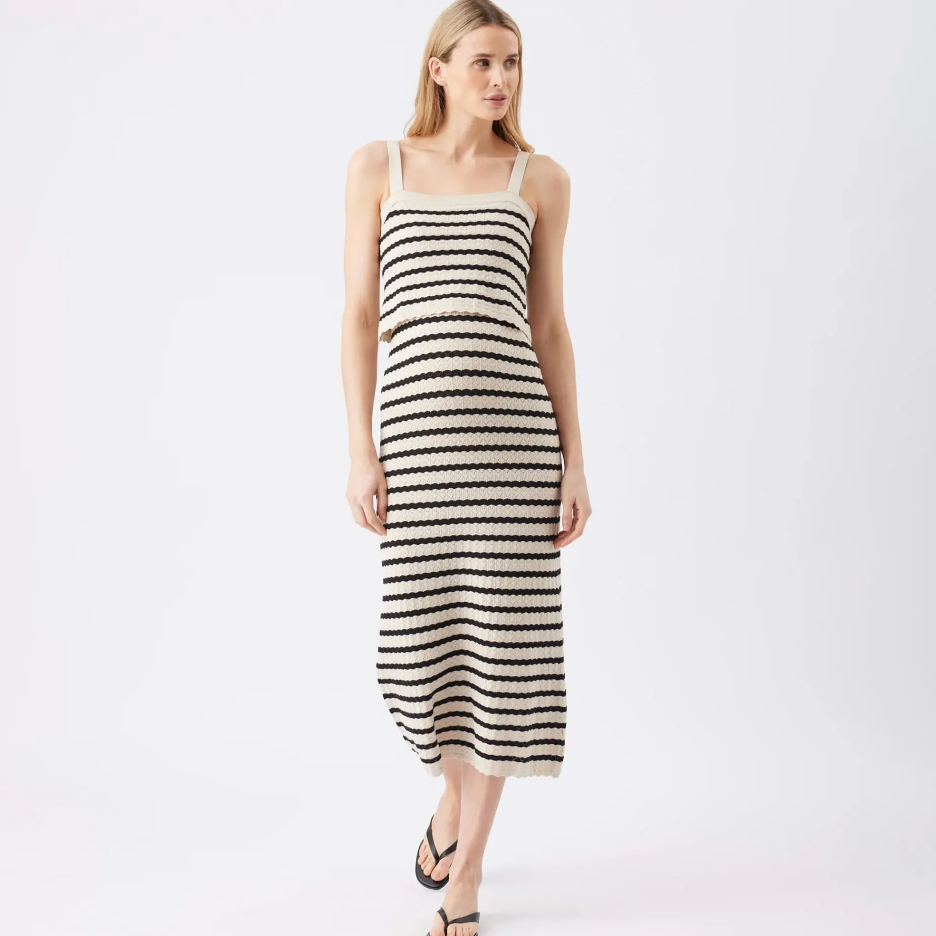 The Pointelle Knit Nursing Dress blends comfort with effortless style. Made from a soft, striped pointelle knit, it has a semi-fitted silhouette that feels as good as it looks. A straight neckline and adjustable straps add a refined touch, while the lift-up overlayer makes nursing easy and discreet. Wear it on its own for a breezy, warm-weather look – this is one of those pieces that’s simple, stylish, and thoughtfully designed for motherhood.