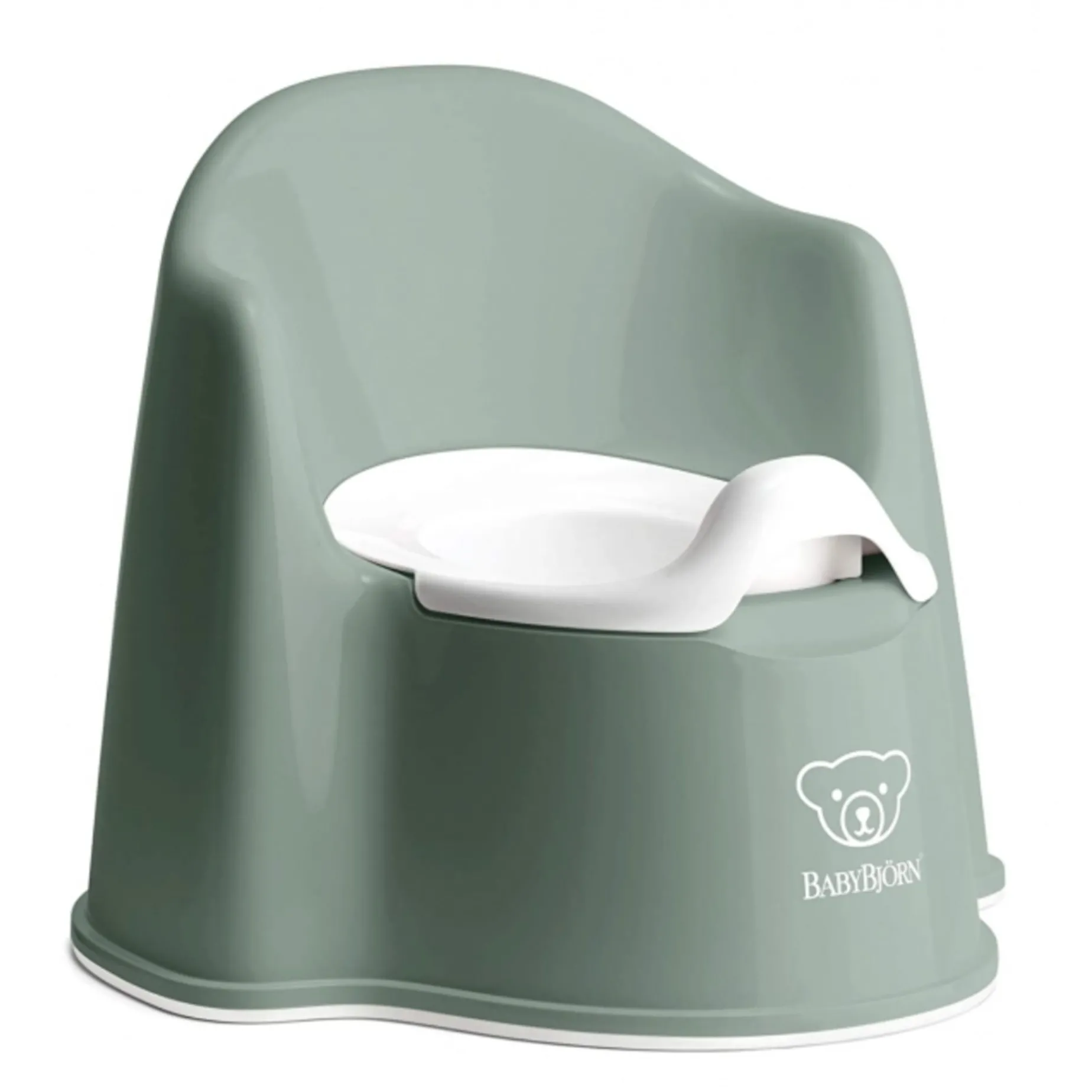 Babybjorn potty chair is a well-designed potty with soft contours, a high backrest and comfy armrests. Your child can just sit back, relax and take all the time they need. The potty chair stays firmly in place on the floor, even when your child moves around! The inner potty is easy for you to take out, empty, and rinse Or wipe clean. The potty chair is Designed in Sweden and made in the USA and is available in several lovely colors that coordinate with our other products.