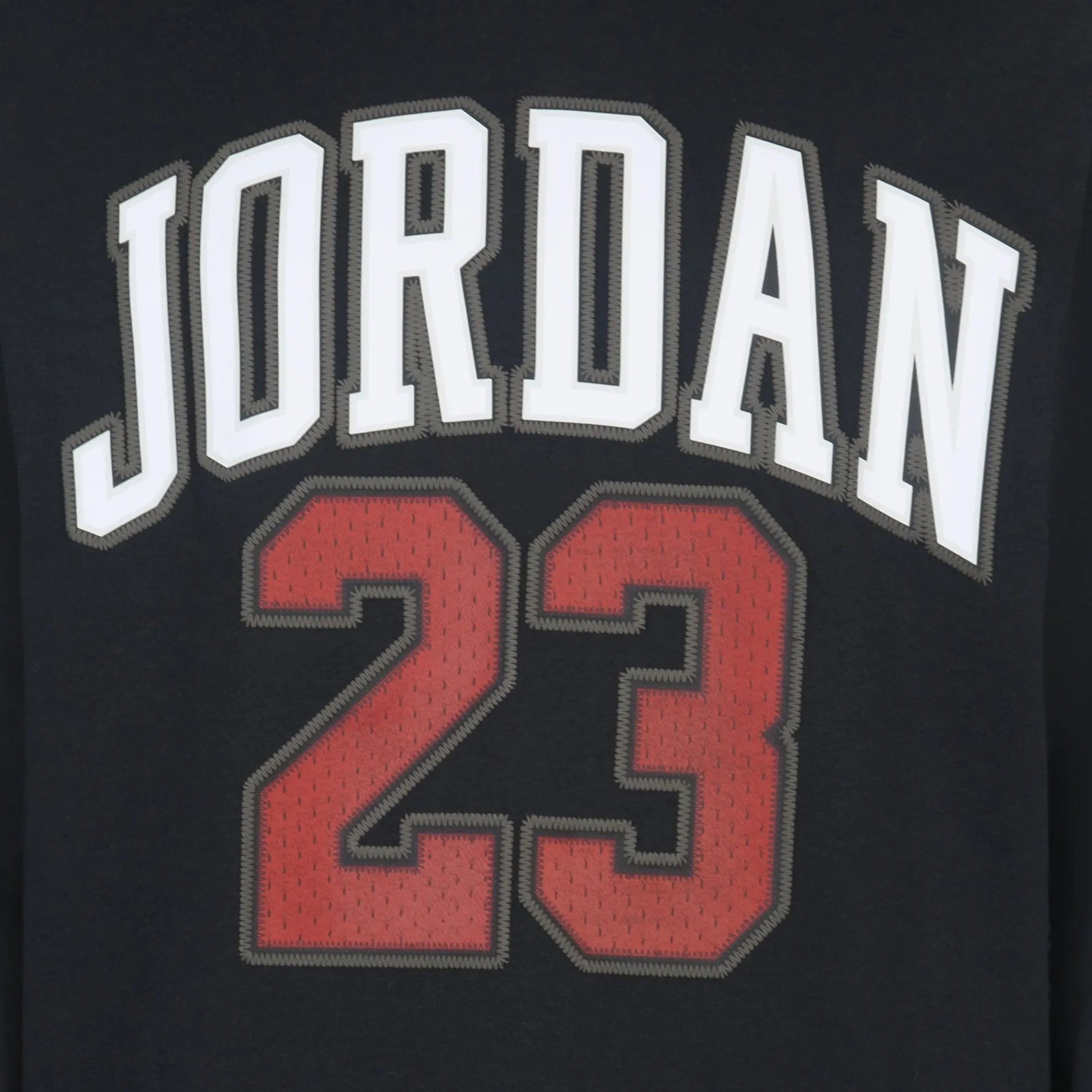 Whether your kiddo is going to team practice, to class, or to hang with friends, this sport jersey inspired tee from Jordan will fit the bill. It’s made of soft cotton/poly jersey, the tagless crewneck provides comfy wear and the long sleeves have ribbed cuffs to add cozy, lightweight warmth.