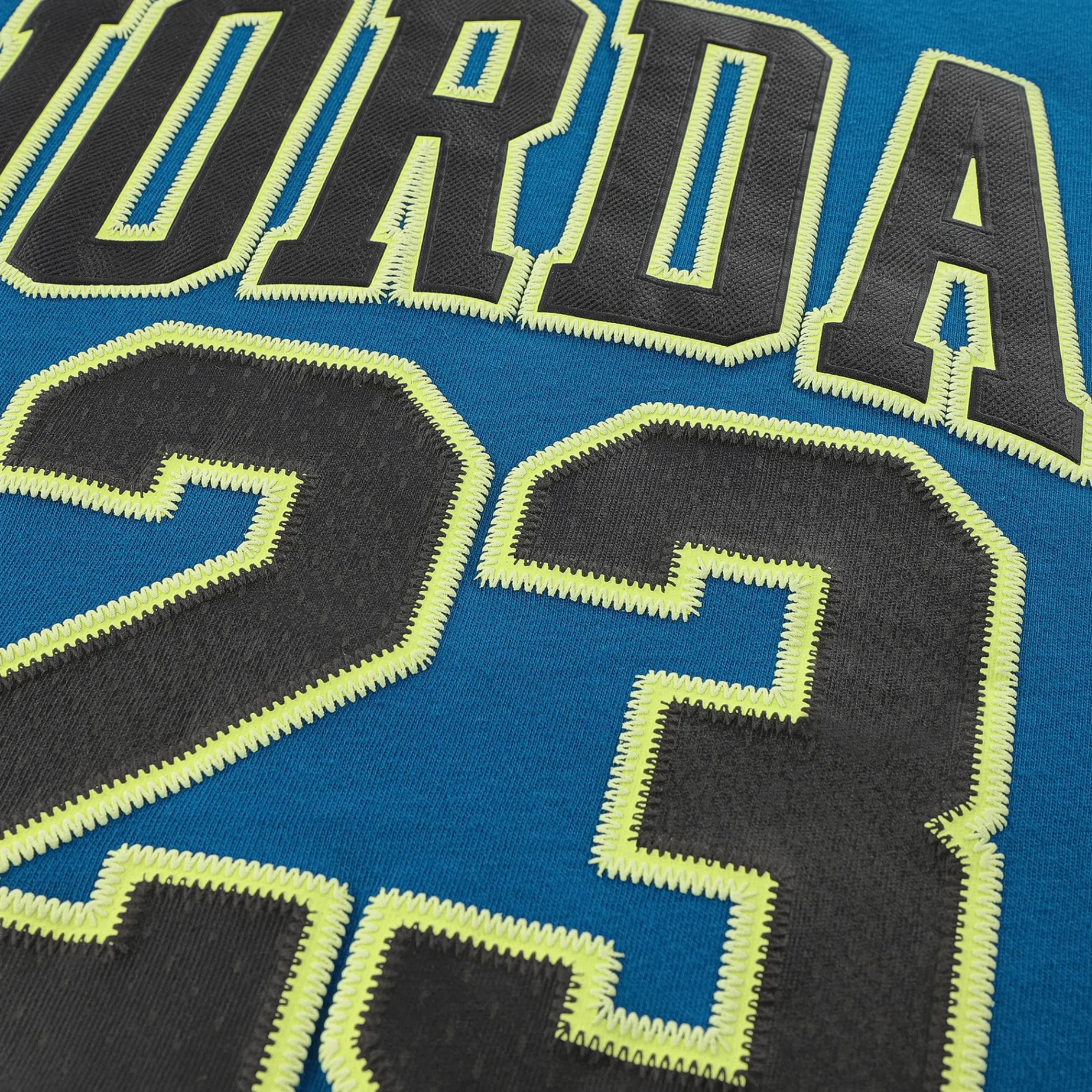 Whether you’re going to team practice, to class or to hang with friends this jersey inspired tee from Jordan will fit the bill. It’s made of soft cotton/poly jersey, the tagless crewneck provides comfy wear and the textured graphic print will complement your Jordans nicely.Â