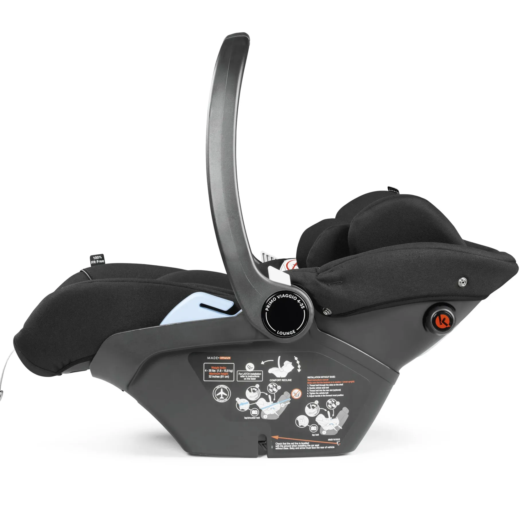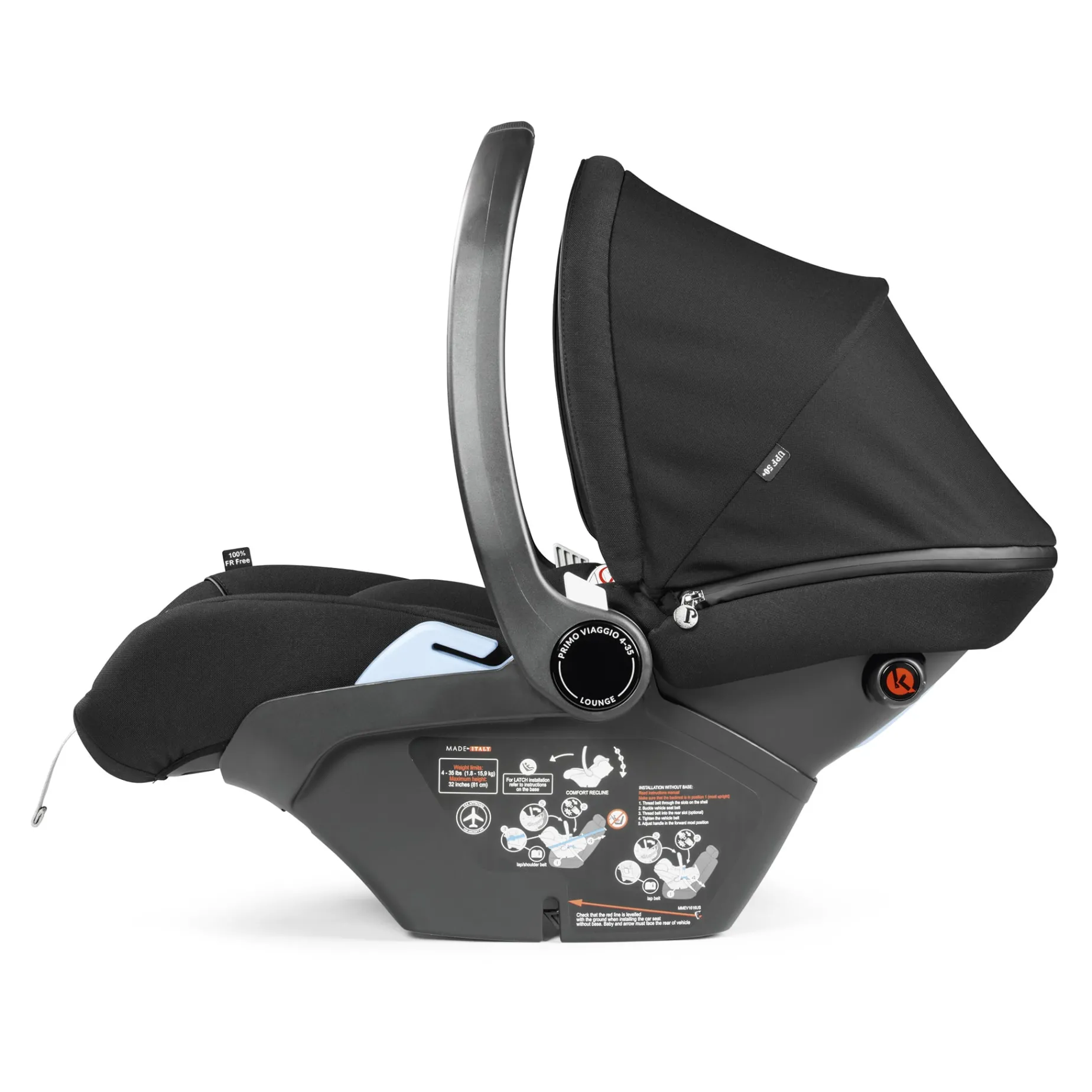 The Agio by Peg Perego Primo Viaggio 4-35 Lounge Infant Car Seat features the Comfort Recline function: the backrest reclines and the leg rest extends, allowing the child to lie down in the best ergonomic position when used on a stroller. The extendable Pagoda Hood provides full coverage, shielding baby from outside elements. The Load Leg Base and Anti-Rebound Bar reduce rotation in case of an accident, the new Kinetic Pods offer enhanced side impact protection: just a few of the innovative features with the Agio Baby Primo Viaggio 4-35 Lounge Infant Car Seat that help protect your newborn.