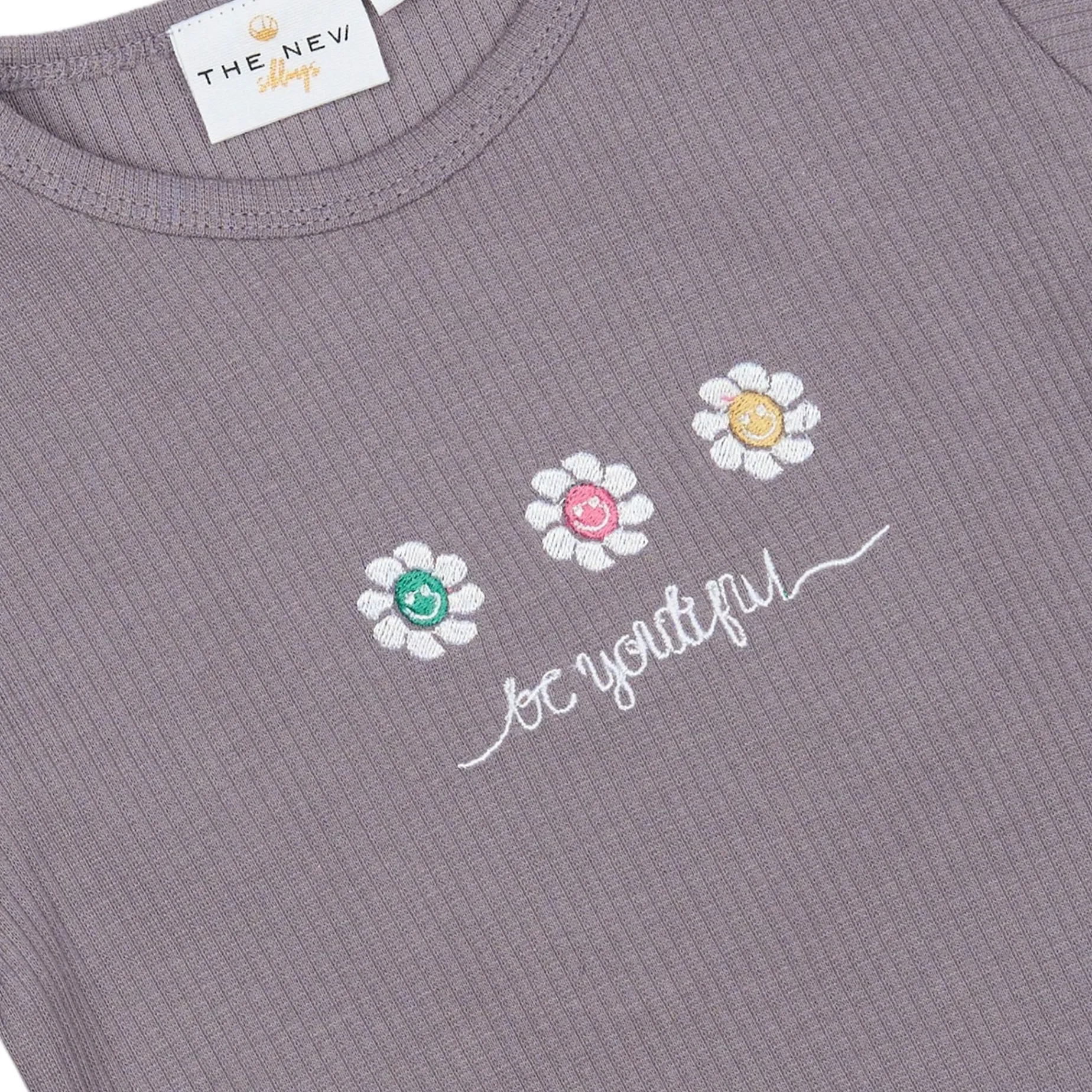 Long-sleeved rib-knit tee with a cute print of 3 beautiful and smiling flowers with the text “Be yourself”. This simple basic tee from THE NEW siblings is versatile and can easily be styled with many different bottoms to achieve a new look every time.