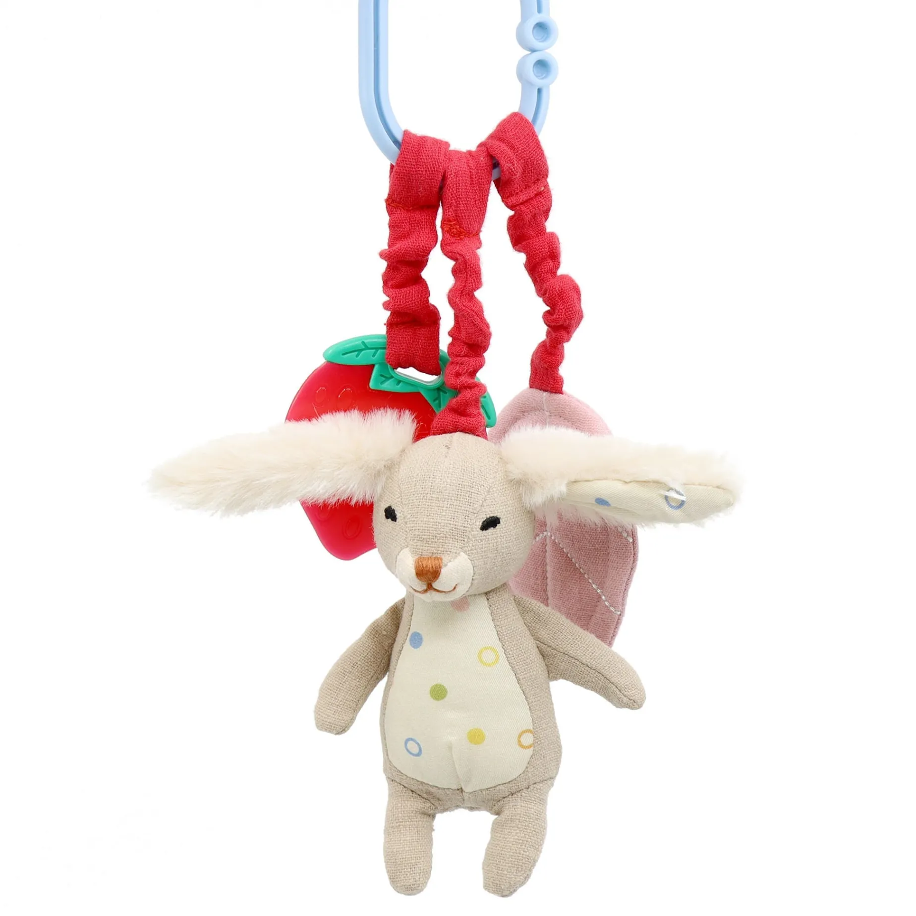 -Easy attachment with a ring to hang it on the stroller, car seat or crib