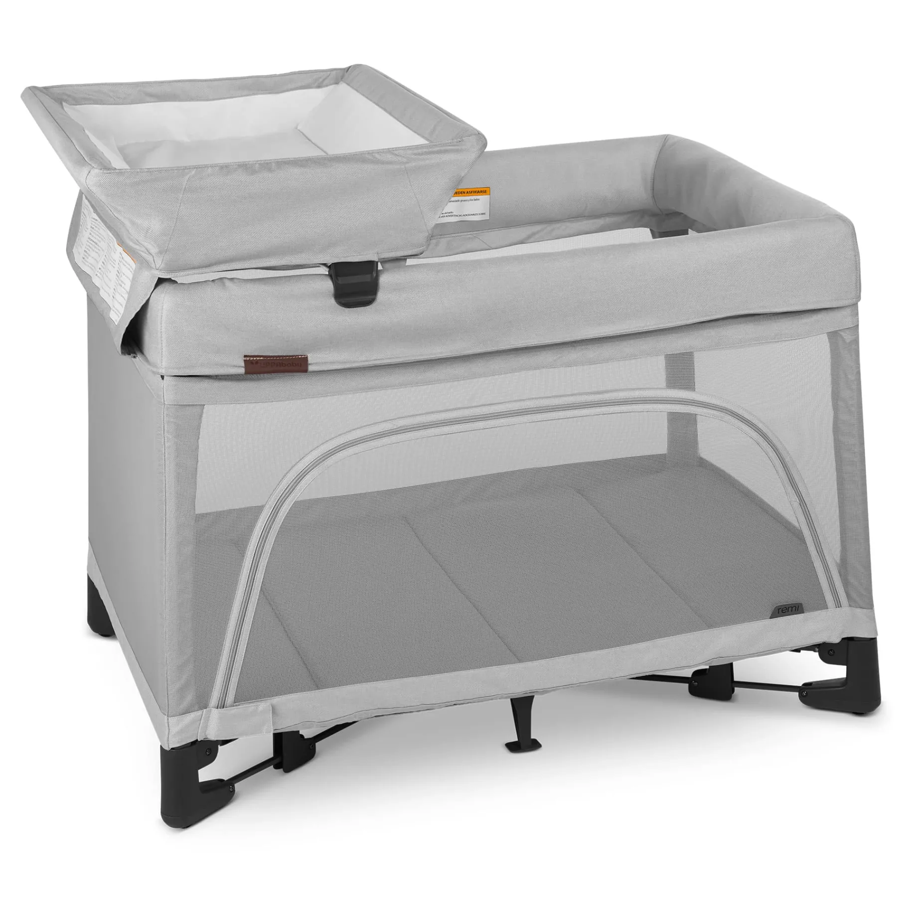 Zipper panel allow for storage mode over side Fashions coordinate to REMI playard fashions.
