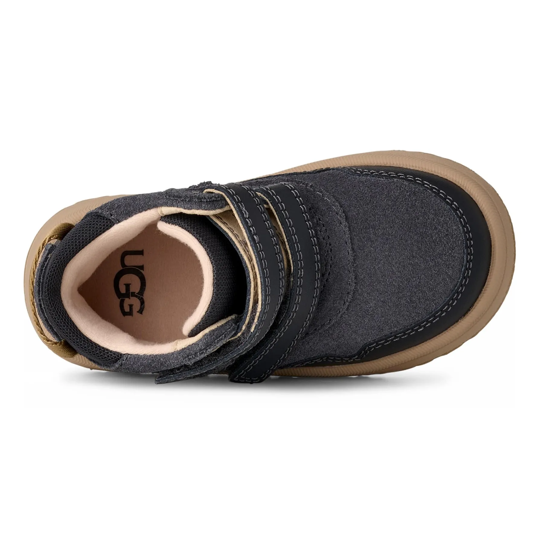 Our Rennie is an easy-wearing sneaker make to keep up with your little one. The upper features a mix of genuine leather and suede detailed with iconic Twin Seams for the look and Feel of UGG®. Two hook-and-loop closures secure the fit while the durable EVA and rubber outsole offers unbelievable flex for kiddos on the go. Lined with a soft textile lining finished with a peppermint-based anti-odor treatment for enhanced freshness, wear after wear.