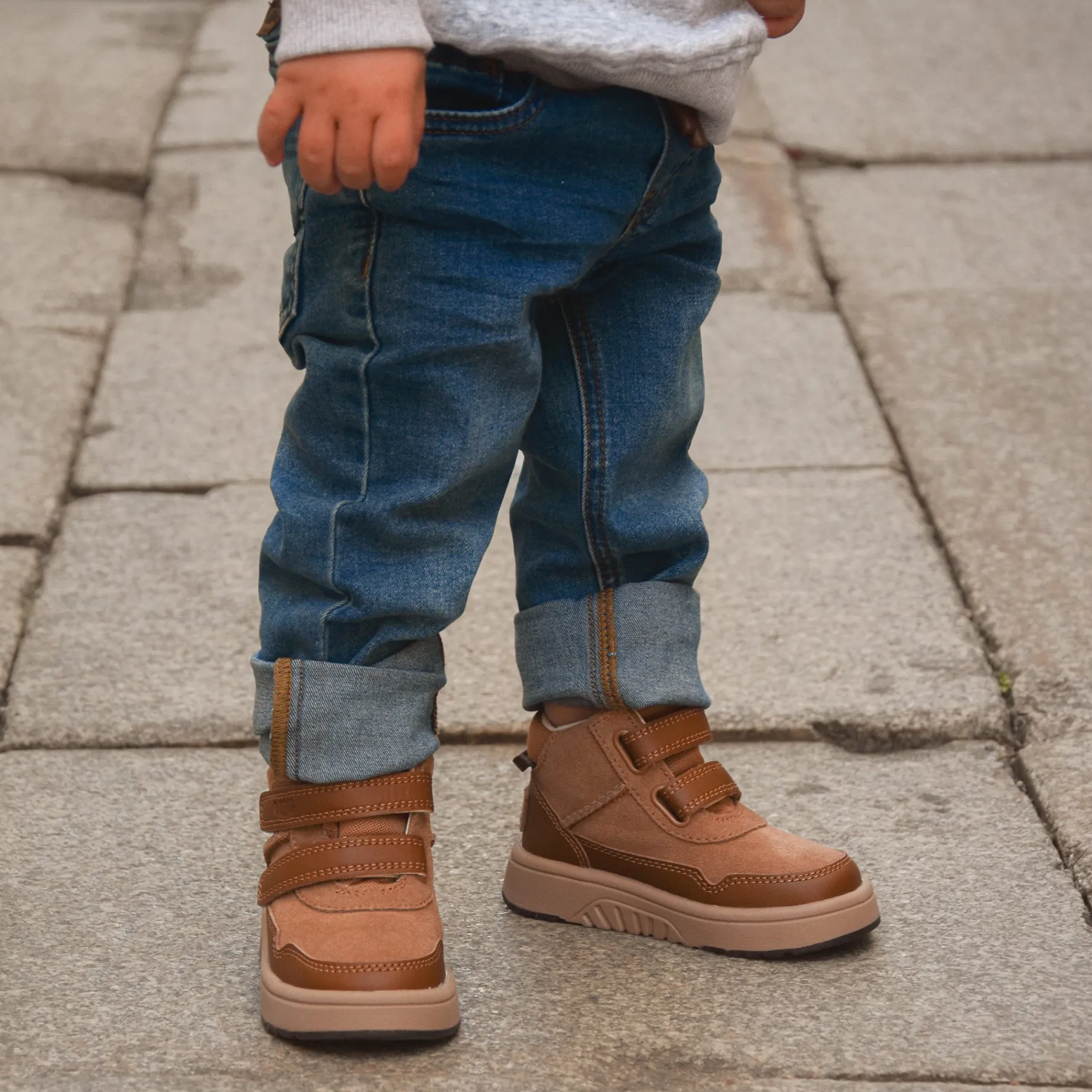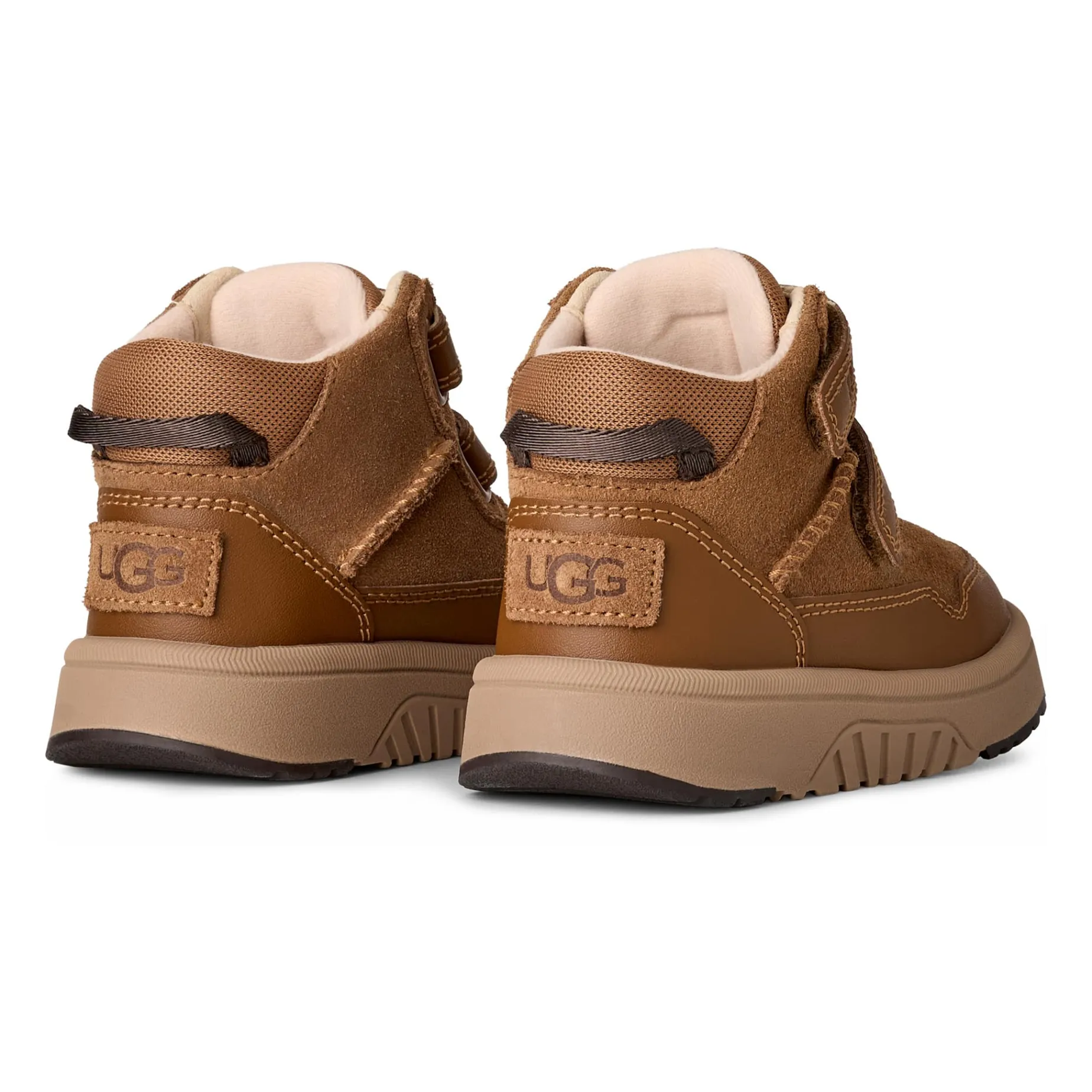 Our Rennie is an easy-wearing sneaker make to keep up with your little one. The upper features a mix of genuine leather and suede detailed with iconic Twin Seams for the look and Feel of UGG®. Two hook-and-loop closures secure the fit while the durable EVA and rubber outsole offers unbelievable flex for kiddos on the go. Lined with a soft textile lining finished with a peppermint-based anti-odor treatment for enhanced freshness, wear after wear.