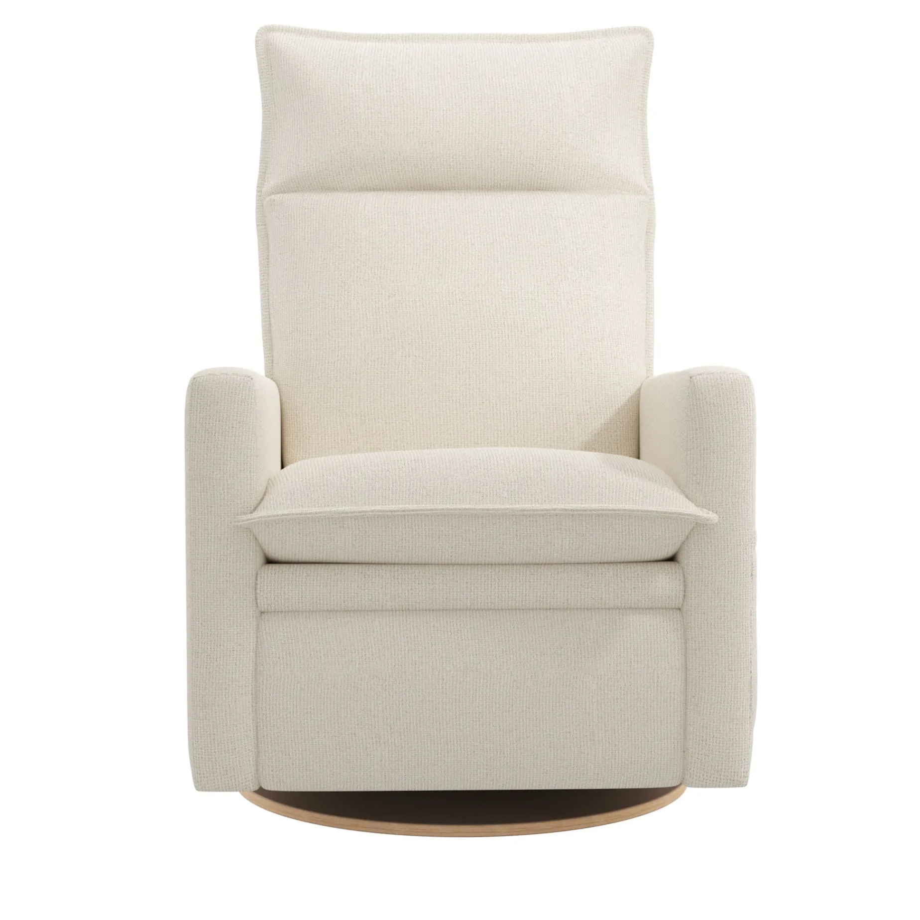 The new Arya reclining chair brings an elegant, relaxed, and comfortable style to baby’s rooms. Its plush cushions allow you to sink into the chair and find the perfect position for ultimate relaxation.The recliner swivels with a smooth rocking motion, so you won’t disturb your little one’s sleep while settling in comfortably.