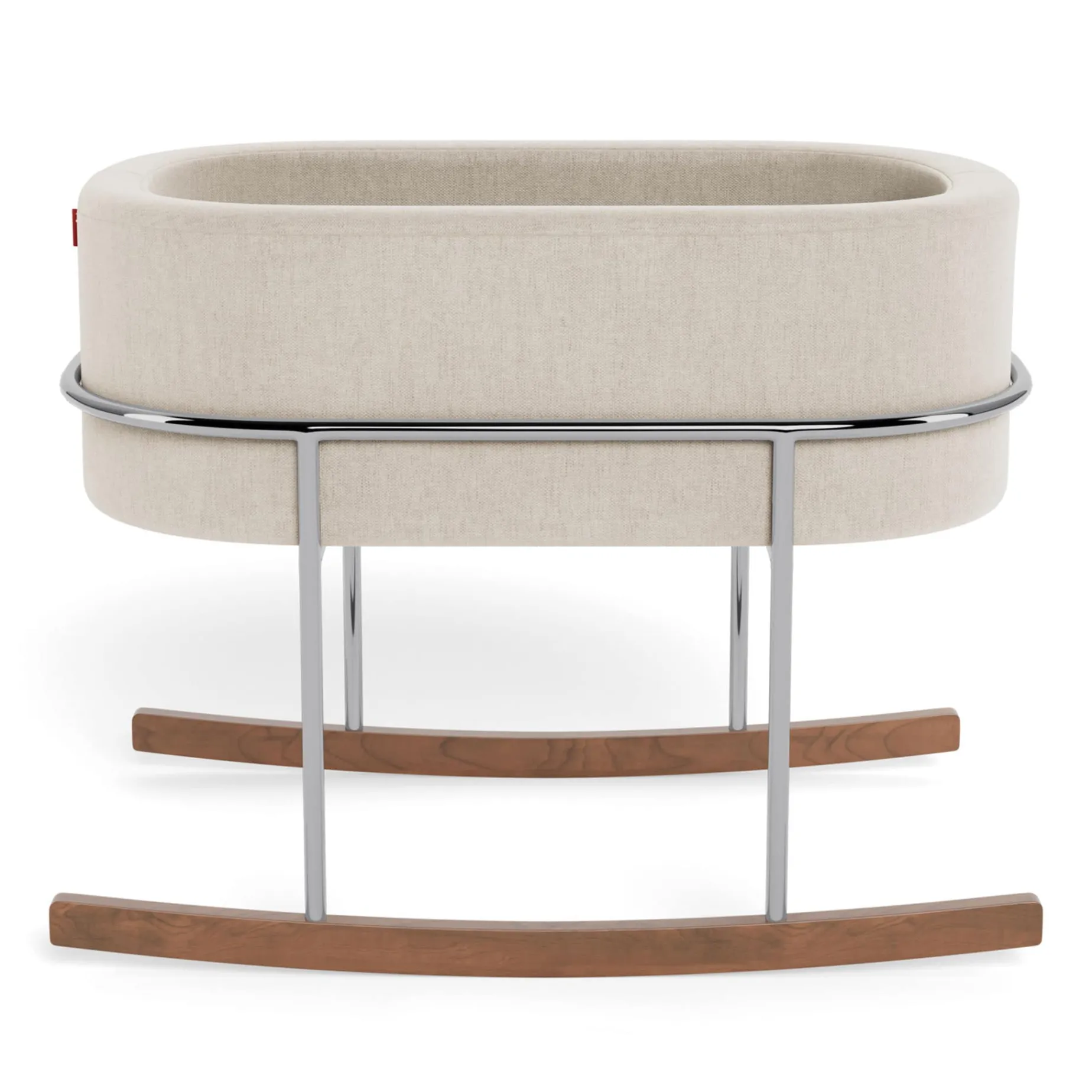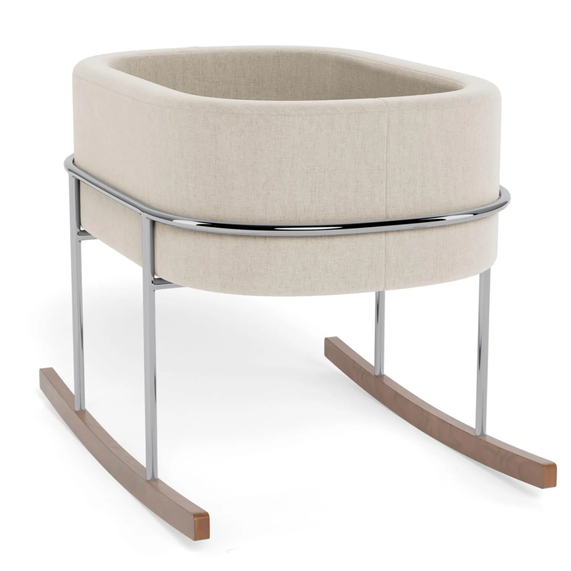 Our Rockwell bassinet is synonymous with ultimate modern luxury; it is the perfect combination of beautiful materials and a soothing rock for your little one. Its streamlined chrome stand with solid walnut rocking feet is beautifully contrasted to the soft upholstered basket that can be removed and transported to different rooms in your home (or the Grandparents’ home!). When you are finished with the bassinet, the basket alone makes an excellent spot to store all your baby’s new stuffies!