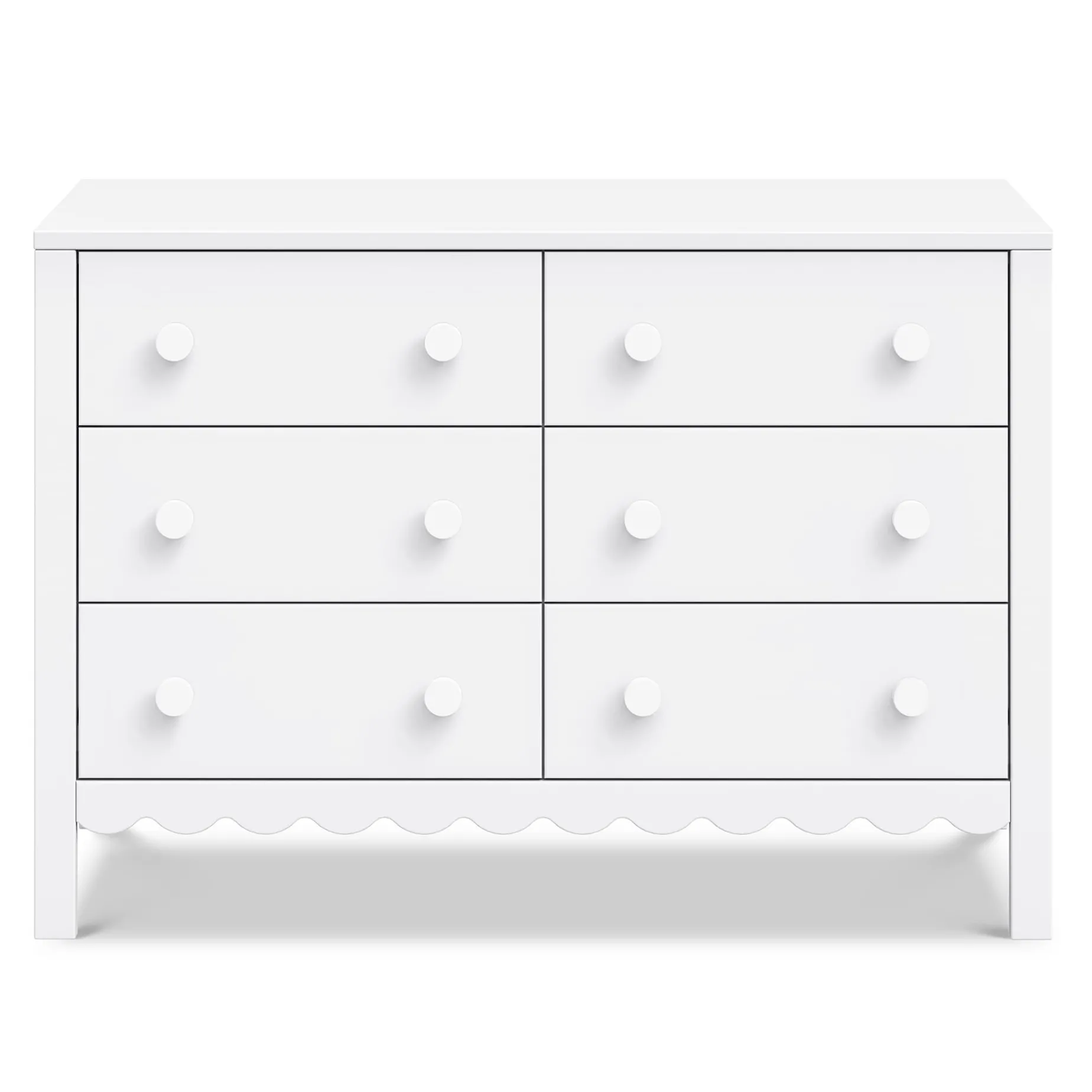 From its charming scallop detailing to its playful colors, the Sammy Scallop 6-Drawer Dresser easily transitions with your little one from baby to teen. Paired with its matching 4-in-1 convertible crib and bookcase, the Sammy Scallop Collection ensures that every moment with your little one is filled with style and joy.