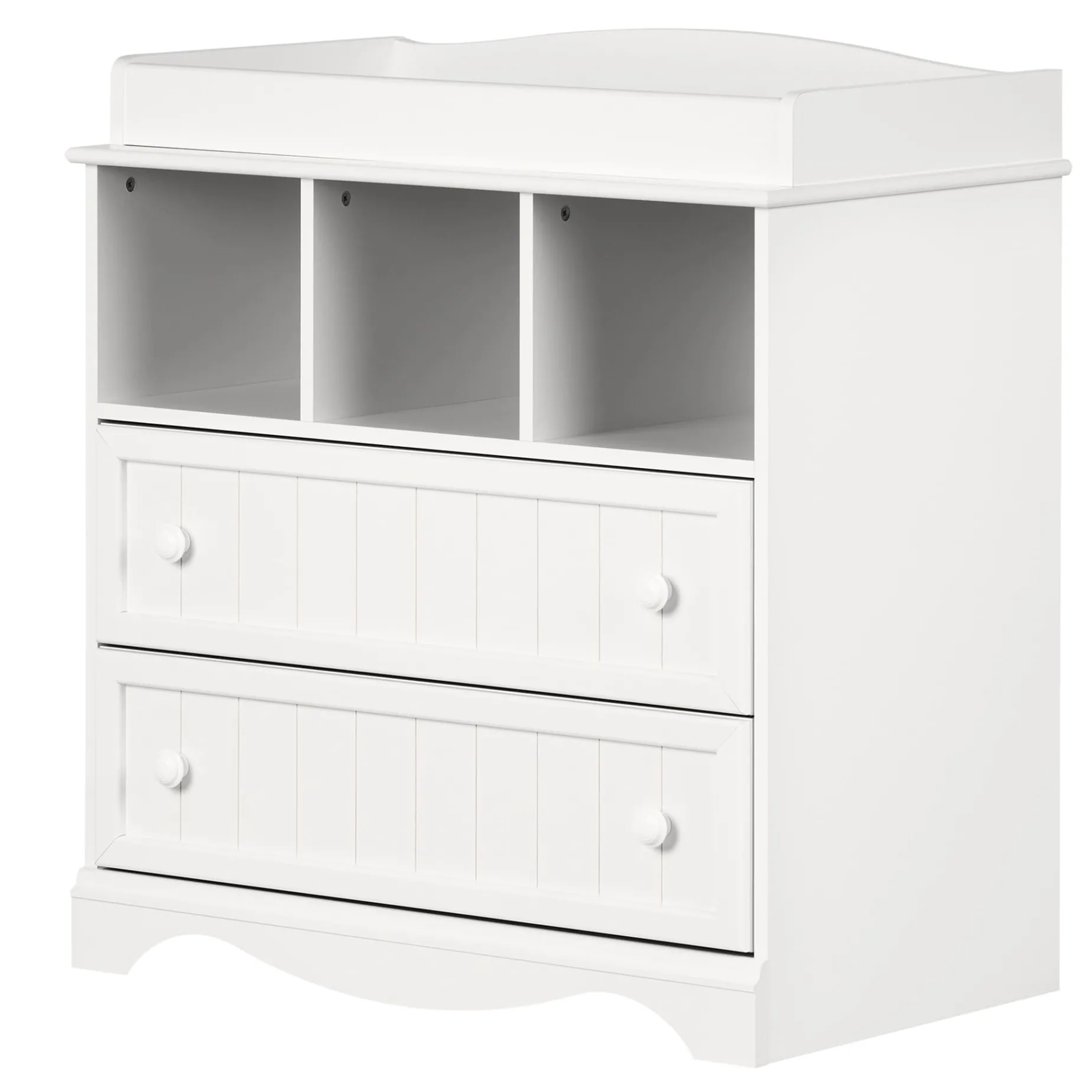 Give your nursery a great new look with this essential Country chic-style piece. The attractive cutout at the bottom, drawer frames, decorative grooves, and wooden knob-style handles give this changing table a warm, elegant look. To make this diaper change “must have” truly attractive, put some nice-looking baskets in the open spaces. The unisex look can work with many different original, fun decor types!