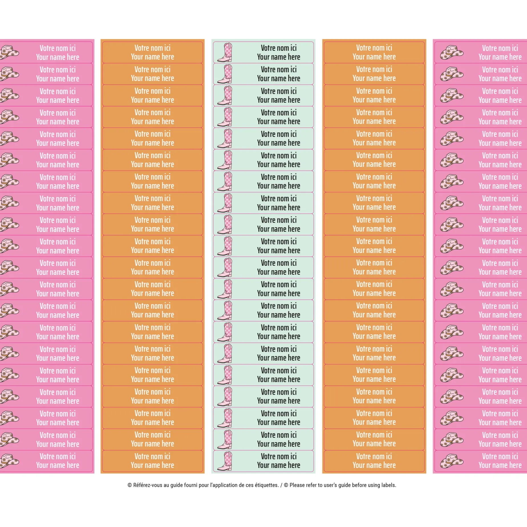 It contains 225 self-adhesive labels of various sizes to effectively identify any type of item. The labels are resistant to water, cold, heat, and steam. They are dishwasher, washing machine, dryer, microwave, freezer, and refrigerator safe. No ironing required: apply them to a clean, dry surface, then wait 24 hours before exposing them to moisture or heat. The name and/or phone number is printed on two lines of 16 characters.