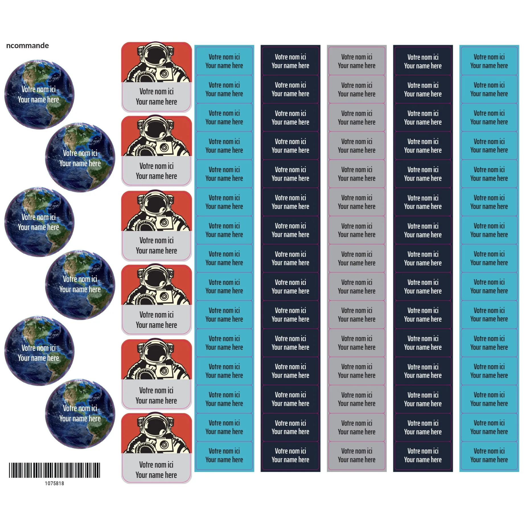 The set of personalized sticky labels ClĂ©ment becomes your best ally for the quick identification of your family’s personal items. In a few seconds, young and old will be able to recognize their school items, lunchbox items, sports equipment, shoes, clothes, etc. Waterproof and durable, the labels are not afraid of freezing, water, heat, or steam. They are resistant to the microwave, refrigerator, freezer, dishwasher, washing machine, and dryer.