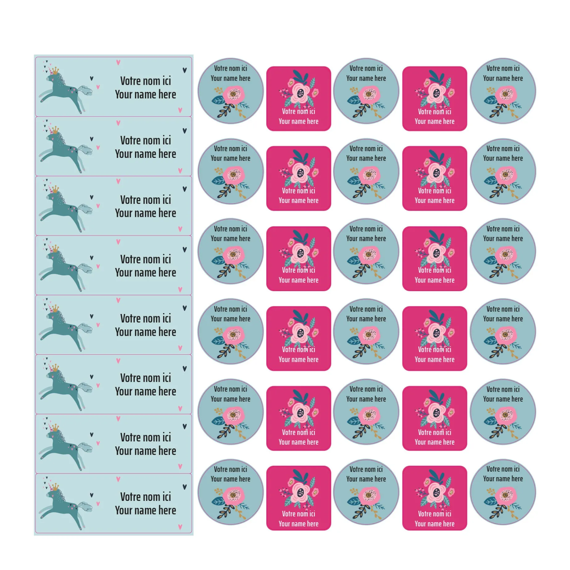The set of personalized sticky labels ClĂ©ment becomes your best ally for the quick identification of your family’s personal items. In a few seconds, young and old will be able to recognize their school items, lunchbox items, sports equipment, shoes, clothes, etc. Waterproof and durable, the labels are not afraid of freezing, water, heat, or steam. They are resistant to the microwave, refrigerator, freezer, dishwasher, washing machine, and dryer.