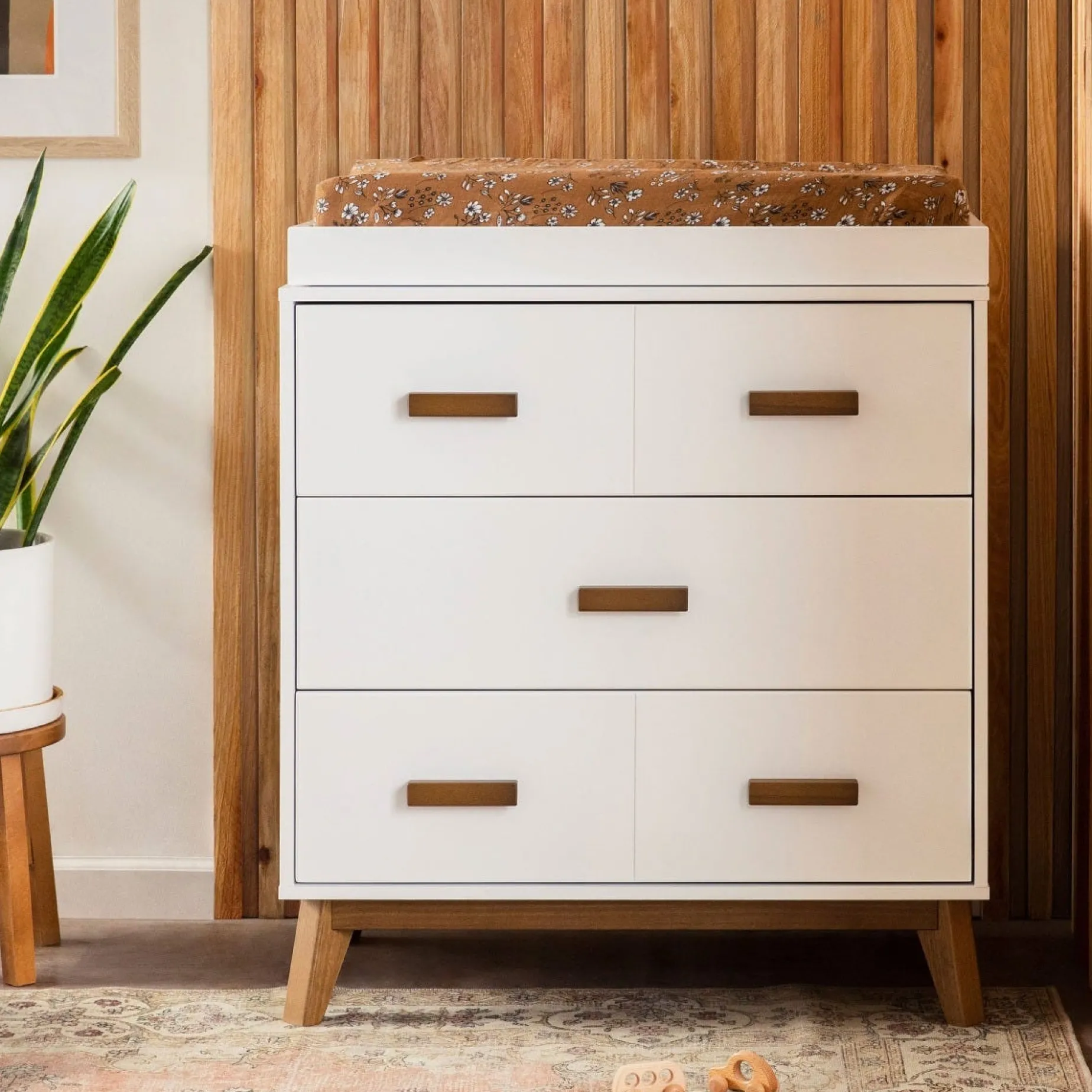 -Mid-Century Modern Style: The Scoot 3-drawer dresser brings personality and practicality together with a hint of retro styling. Pair with your Scoot 3-in-1 crib for a complete nursery look.