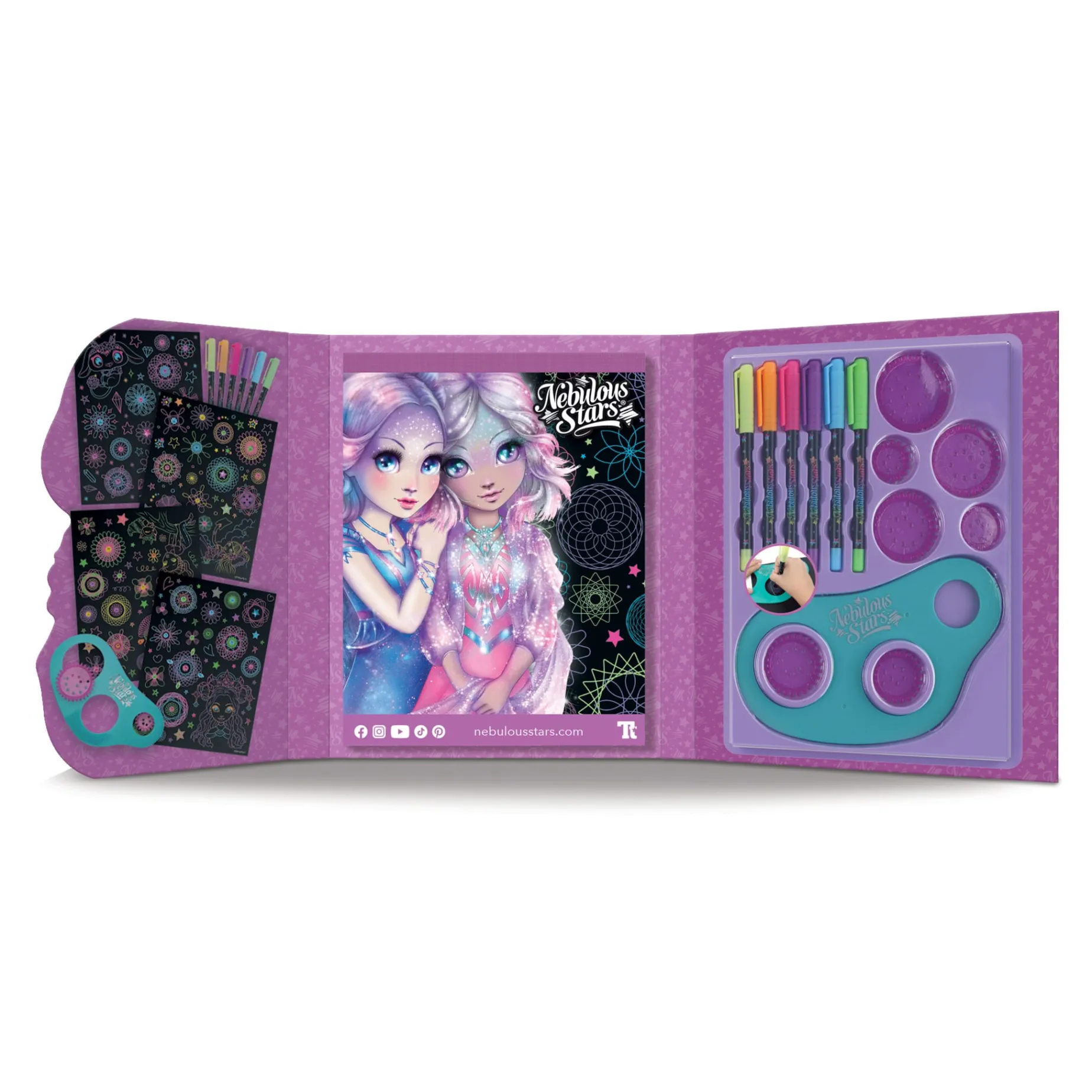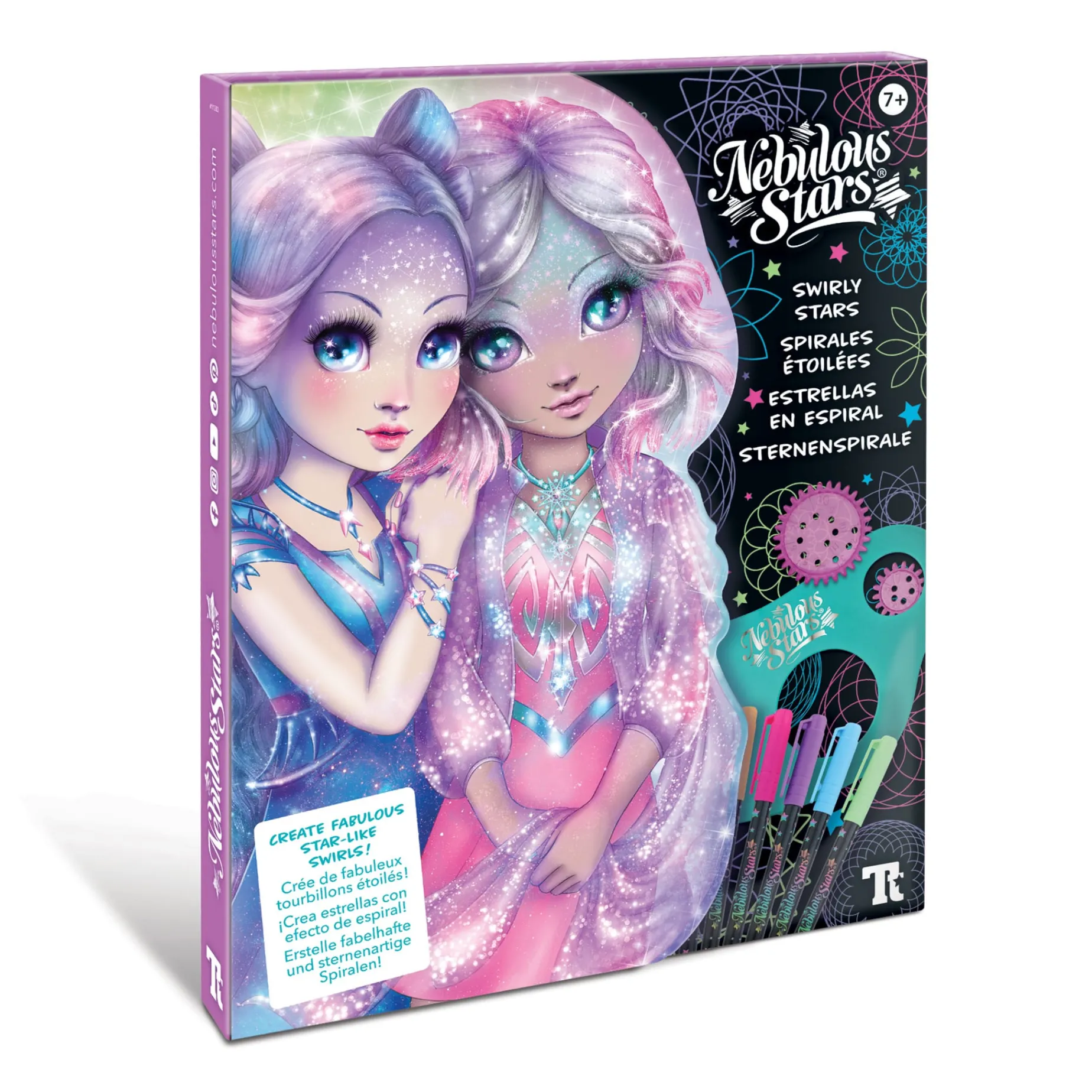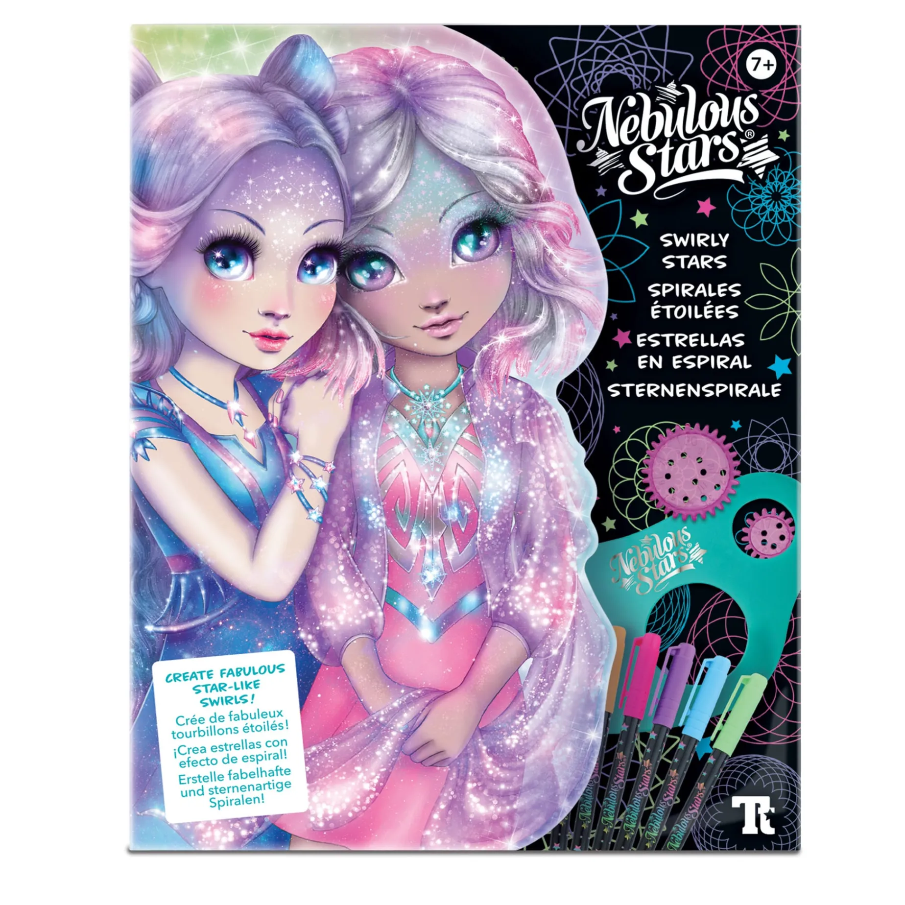 The classic swirl stencil travelling to the stars! Use gel pens and shiny stickers to create fabulous neon swirls around your favorite stars.