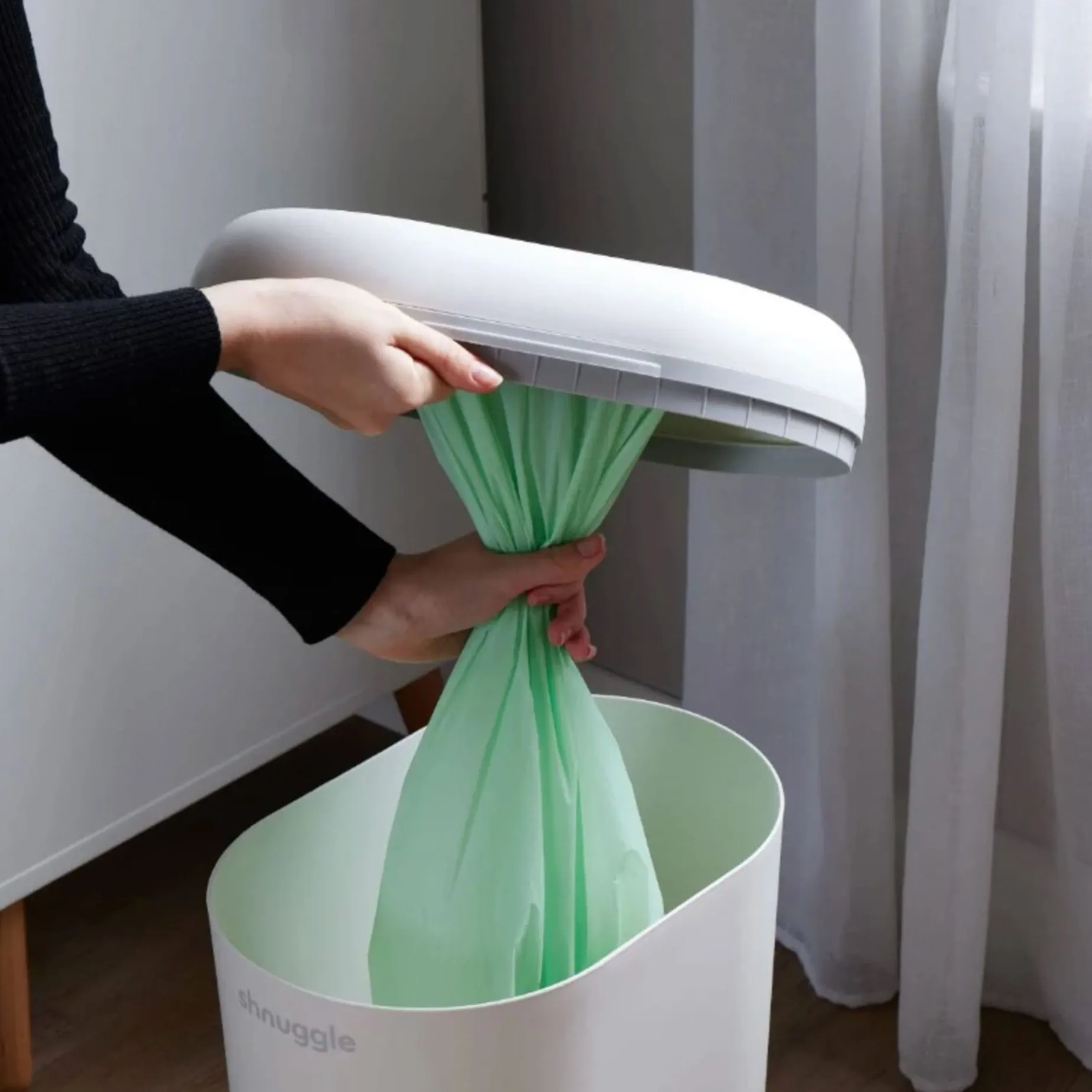 The Shnuggle Eco-Touch Nappy Bin is thoughtfully designed to make nappy changes simpler, more hygienic, and environmentally friendly. With its one-handed ‘drop and go’ operation, dual-seal odour airlock, and cassette-free system, it ensures that nappy disposal is both convenient and sustainable.
