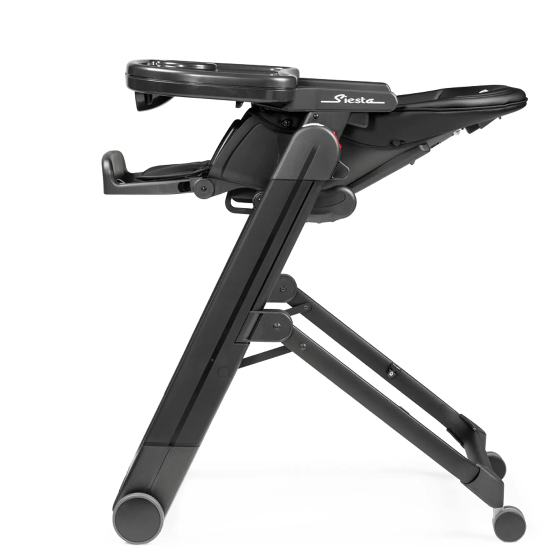 -Removable child tray that easily and quickly withdrawing and inserting with one hand and can be stowed on the rear part of the chassis. It also includes a tray liner, which is dishwasher safe
