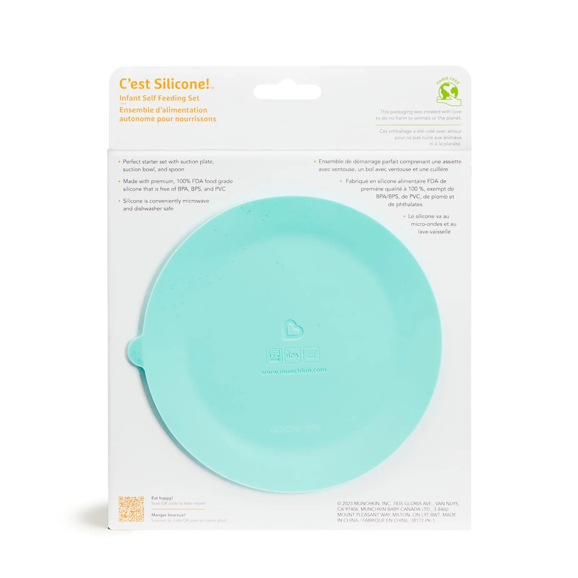 Starter mealtime set includes one suction plate, one suction bowl, and one easy-grip spoon