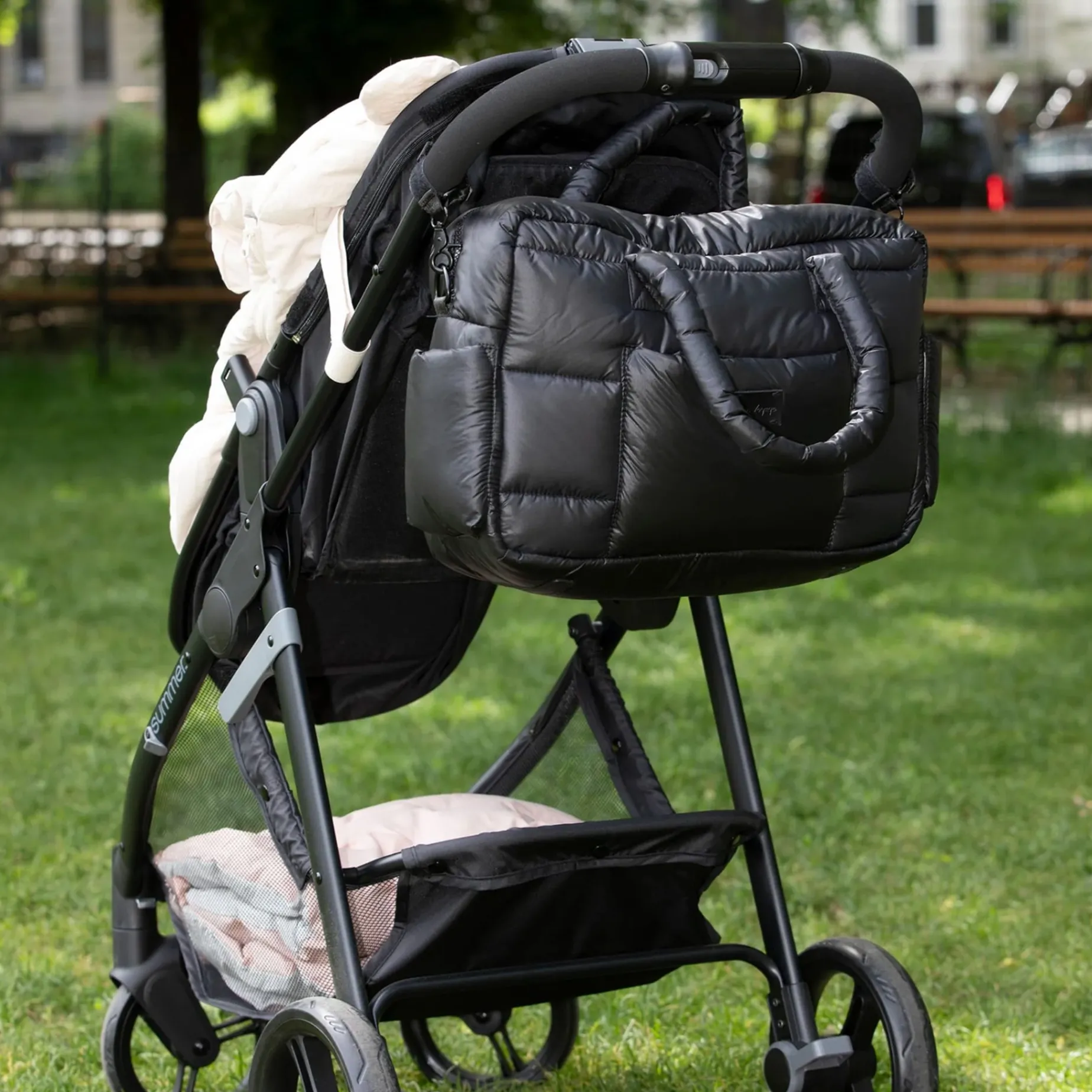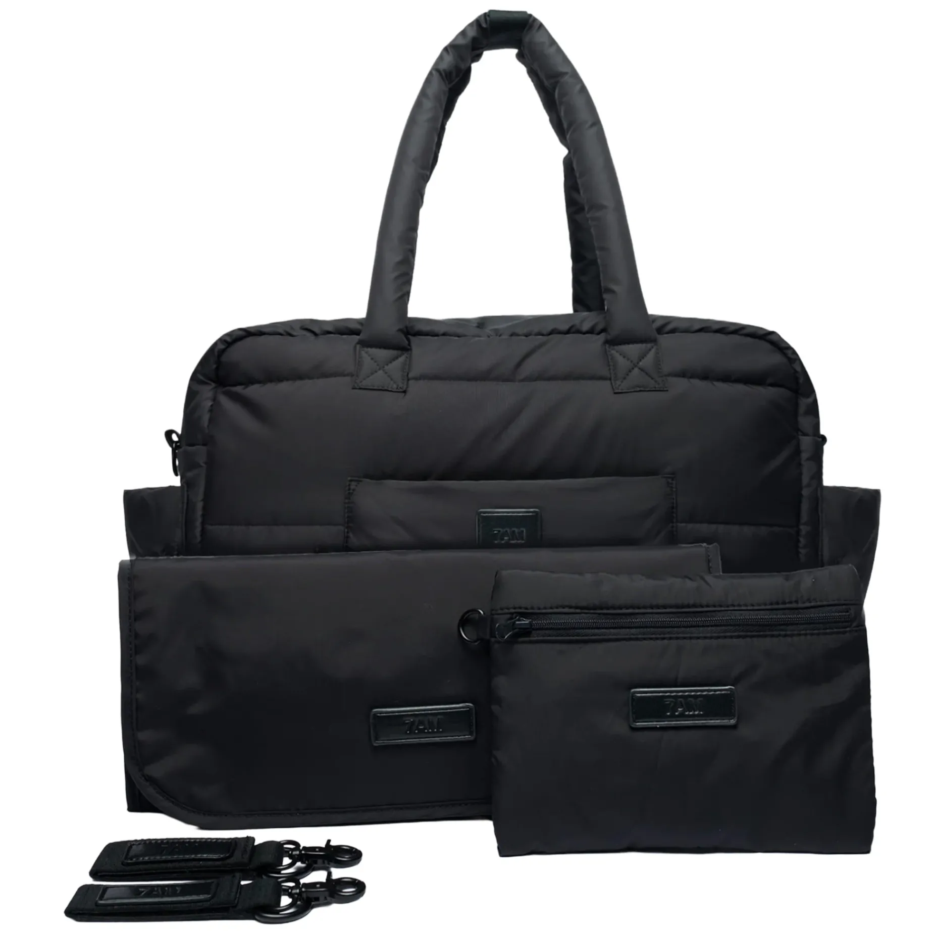 – Includes (Diaper Bag mode): fleece-lined cushioned changing pad, independent zippered wallet pouch, 2 stroller straps, crossbody strap