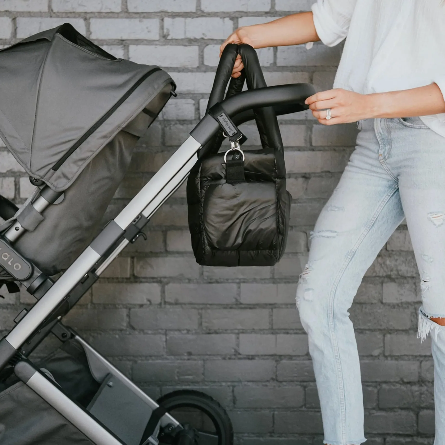 – 2 hook & loop D-rings for stroller attachment