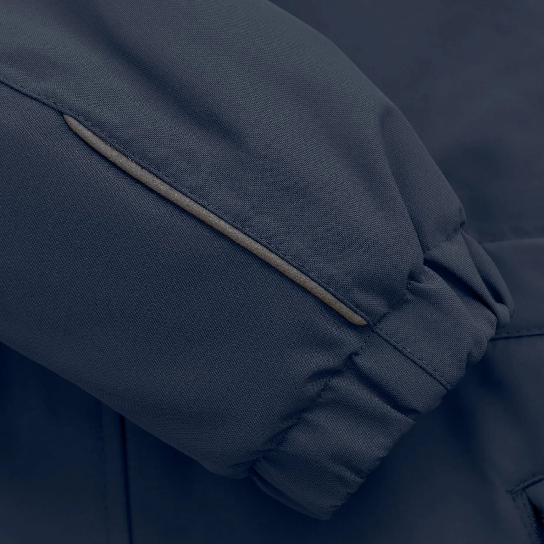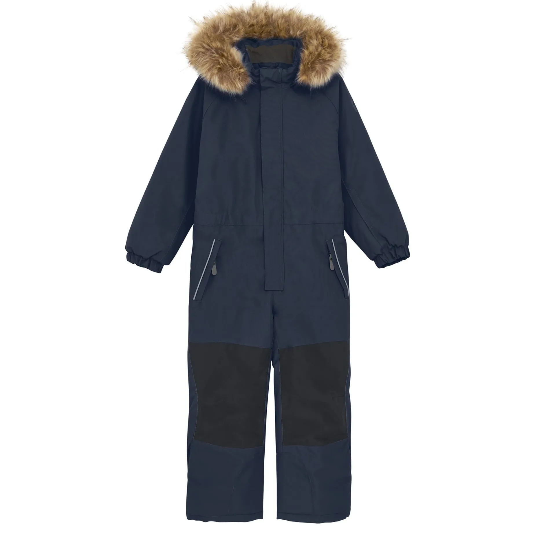 Warm coverall for your child in durable material. The material is breathable, windproof and waterproof, so your child can stay out in the rain, snow and wind without getting cold and wet. Tested wear resistance of 60,000 rubs, water column pressure of 20,000 mm. and breathability of 10,000g. The coverall has a quality zipper closure at the front and on the outside pockets at the front. Chin protectors make sure that the zipper feels soft under the chin. The coverall has a detachable hood where the fake fur is detachable as well. Adjustable rubber boot straps that can be put under the boot to hold it in place. Reflective details on the back and on the sleeve. It has a name tag inside. The coverall is made of recycled material. Coated with BIONIC FINISH® ECO. Certified acc. to GRS – Made with more than 50% Recycled Material