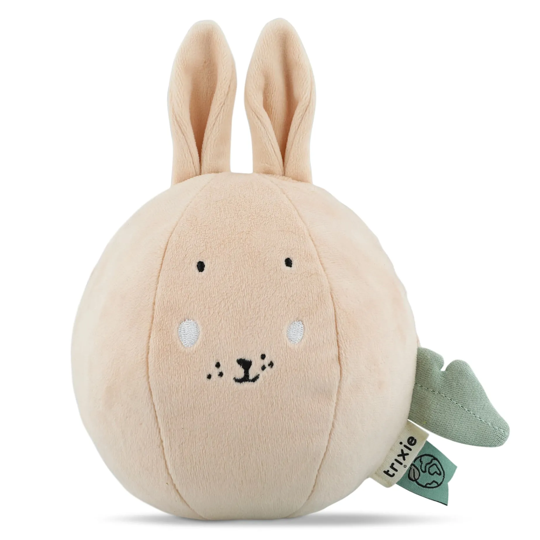 Baby’s newest friend is ready to roll and your little one will love to crawl after him. He’s soft and huggable with a friendly face, has a bell in his tummy and different fabrics for sensory stimulation.