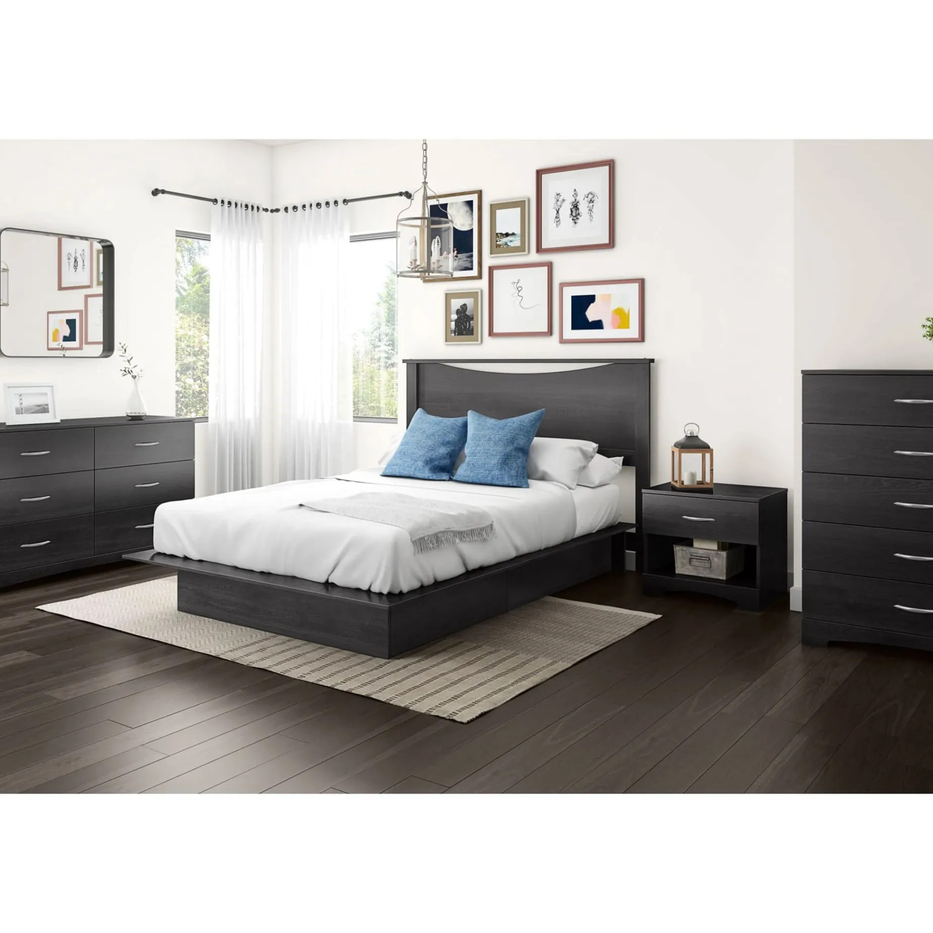 – SLEEK AND MODERN: With contemporary shaping and finish, the dresser features a curved kickboard and contrasting metal handles, making it a stylish addition to any bedroom decor.