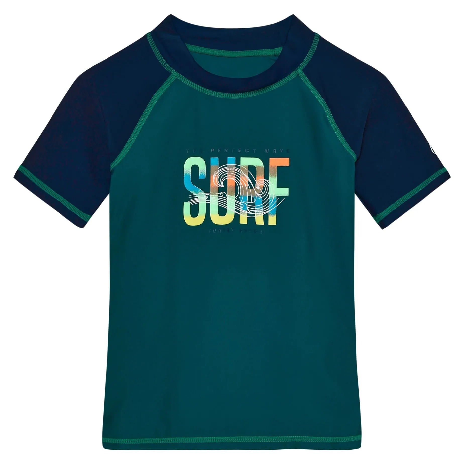 OEKO-TEX® STANDARD 100 Cert. No. 2276-364 DTI, Tested to UV STANDARD 801 UPF 60+ Swim T-shirt from Color Kids. The T-shirt is flexible and comfortable to wear. Certified acc. to OEKO-TEX® STANDARD 100 Cert. No. 2276-364 DTI Tested and certified acc. to UPF 60+. To determine the UPF rating, the fabric is tested in both new and used conditions, following the UV STANDARD 801 method. The entire product is then CE-certified under PPE regulations.