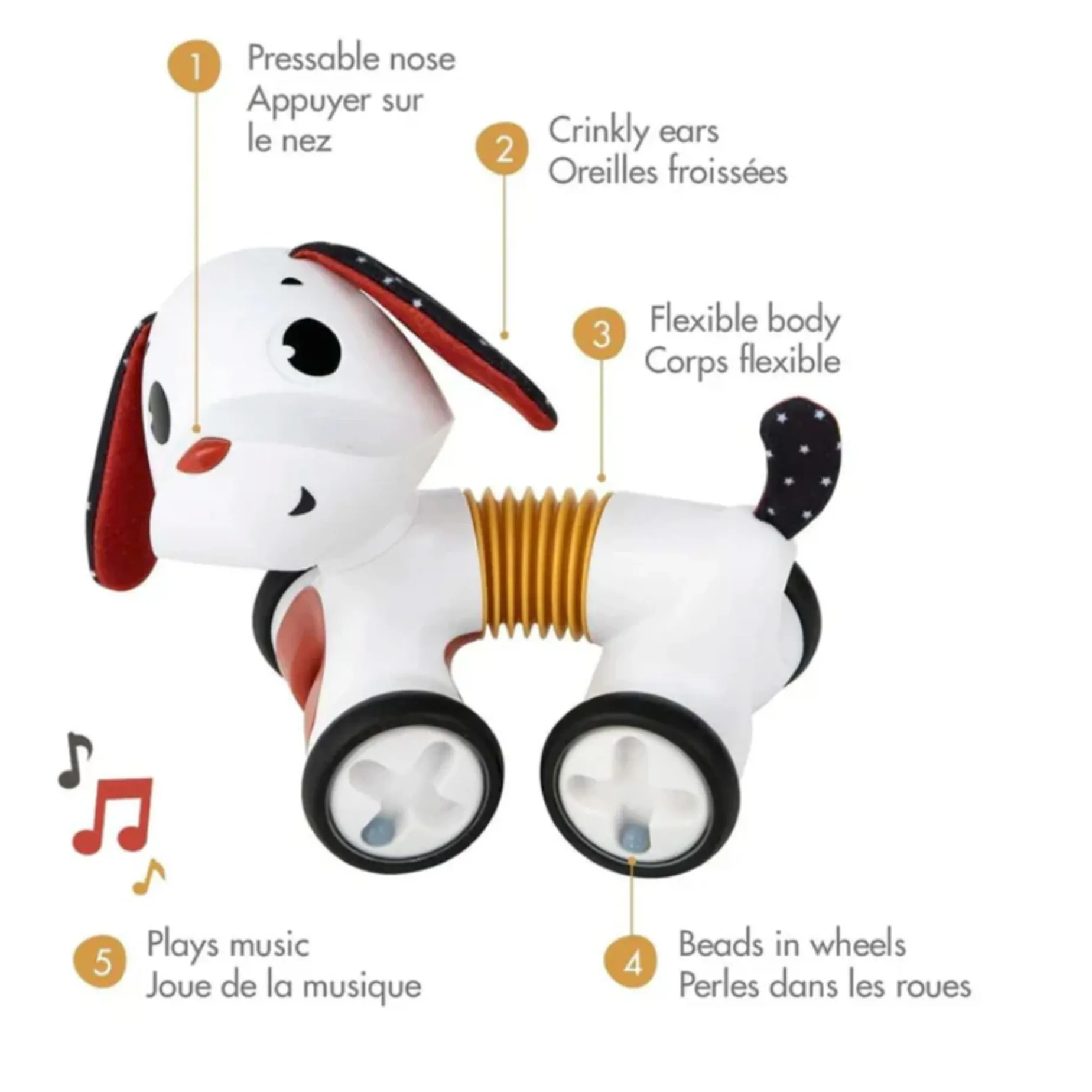 -Plays music while moving: Supports little ones’ motor skills by encouraging them to embark on their mobility adventure and make their first attempts at crawling.