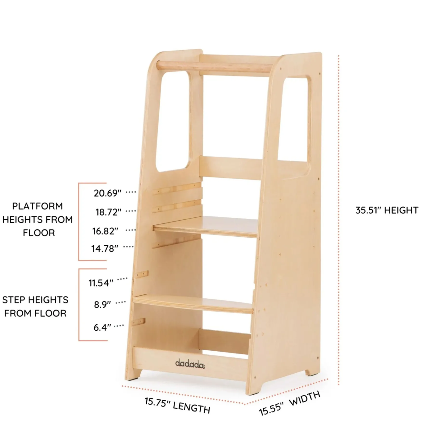 With easy-to-adjust steps to reach a variety of heights, baby-safe finishes, and a collection of playful, adorable colors, the Toddler Tower is a must-have for baby’s next exploratory phase.
