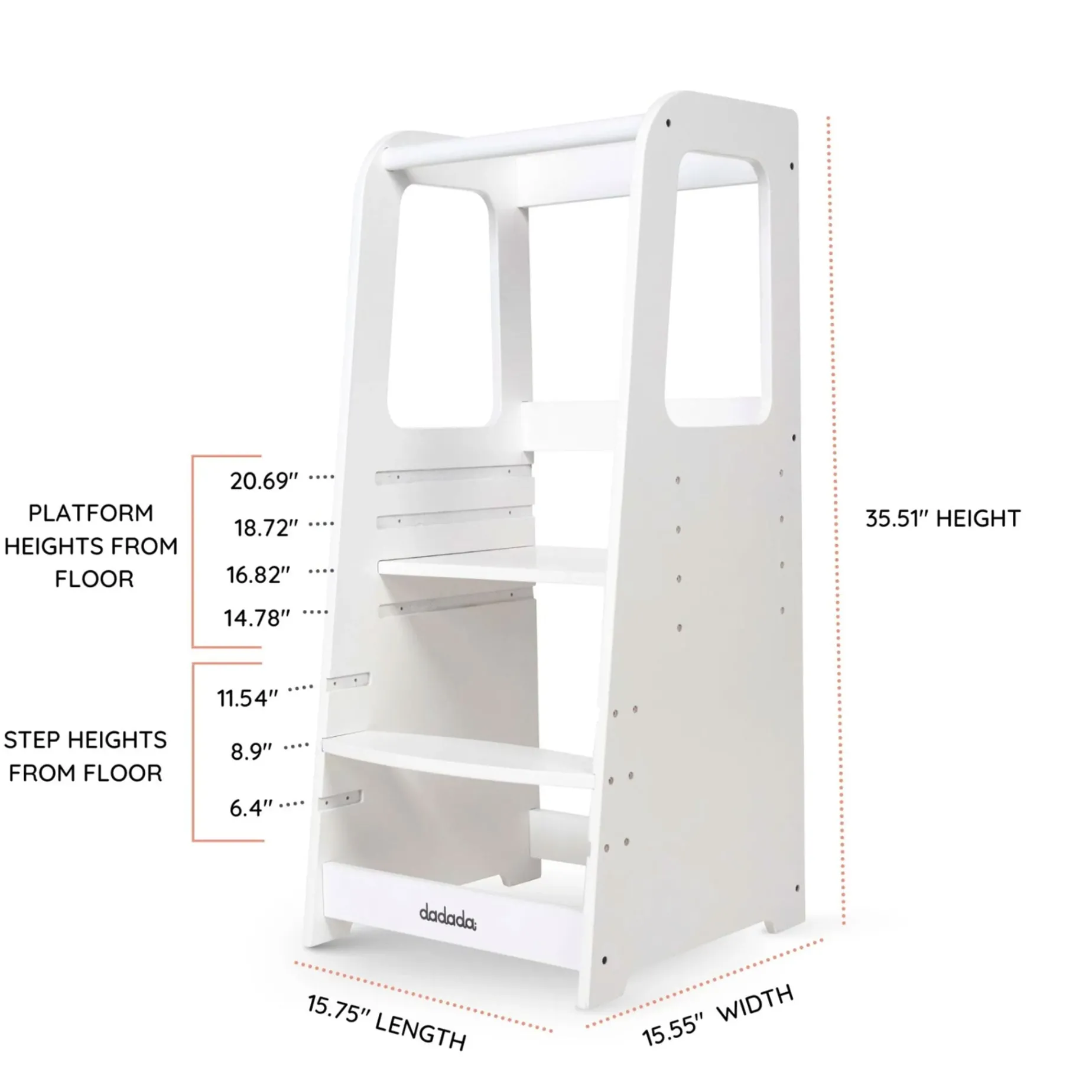 With easy-to-adjust steps to reach a variety of heights, baby-safe finishes, and a collection of playful, adorable colors, the Toddler Tower is a must-have for baby’s next exploratory phase.