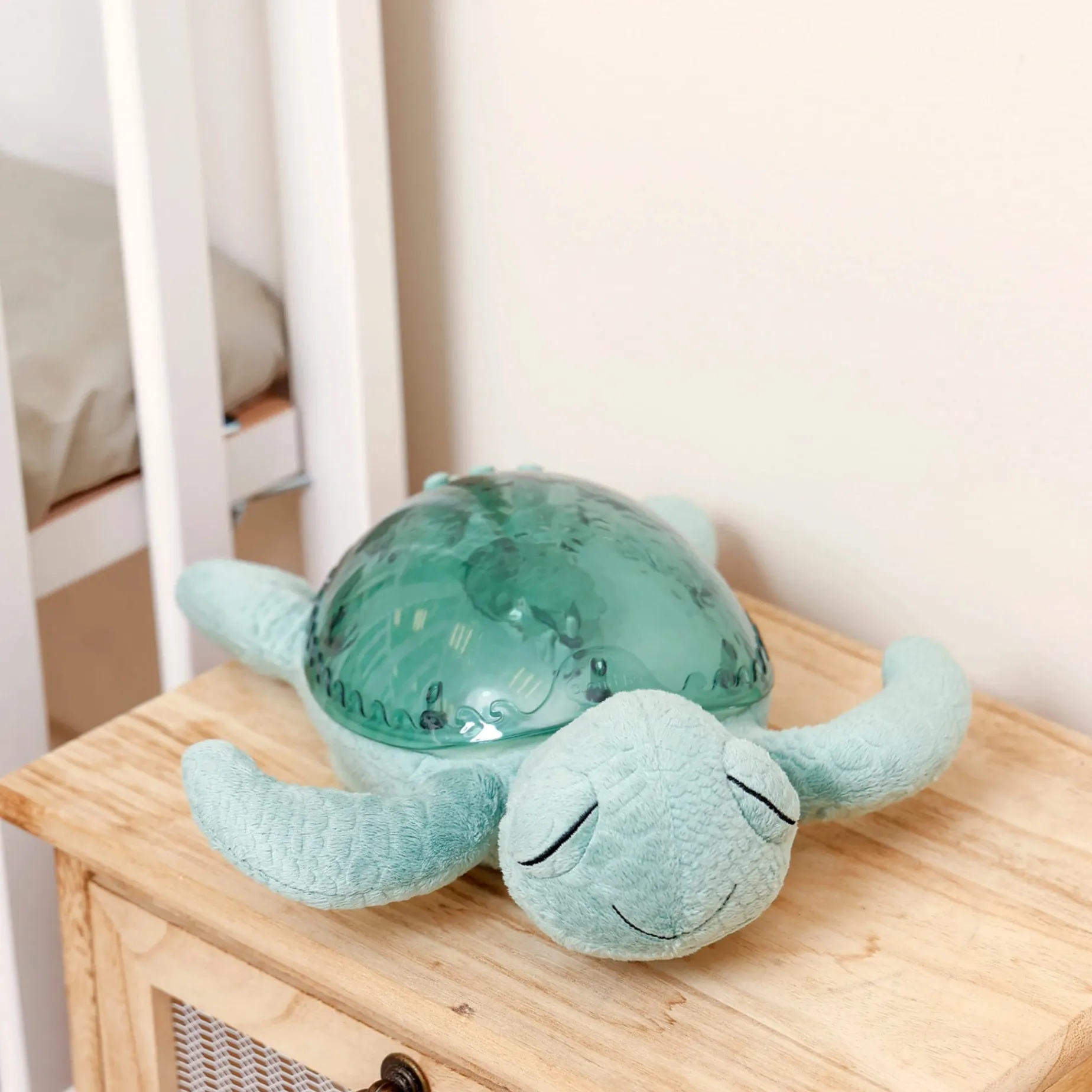 Tranquil Turtle™ Rechargeable – Green is a cute musical turtle, made from 100% recycled polyester fabric and padding, that glows with a soft light and projects moving ocean waves on the bedroom ceiling.