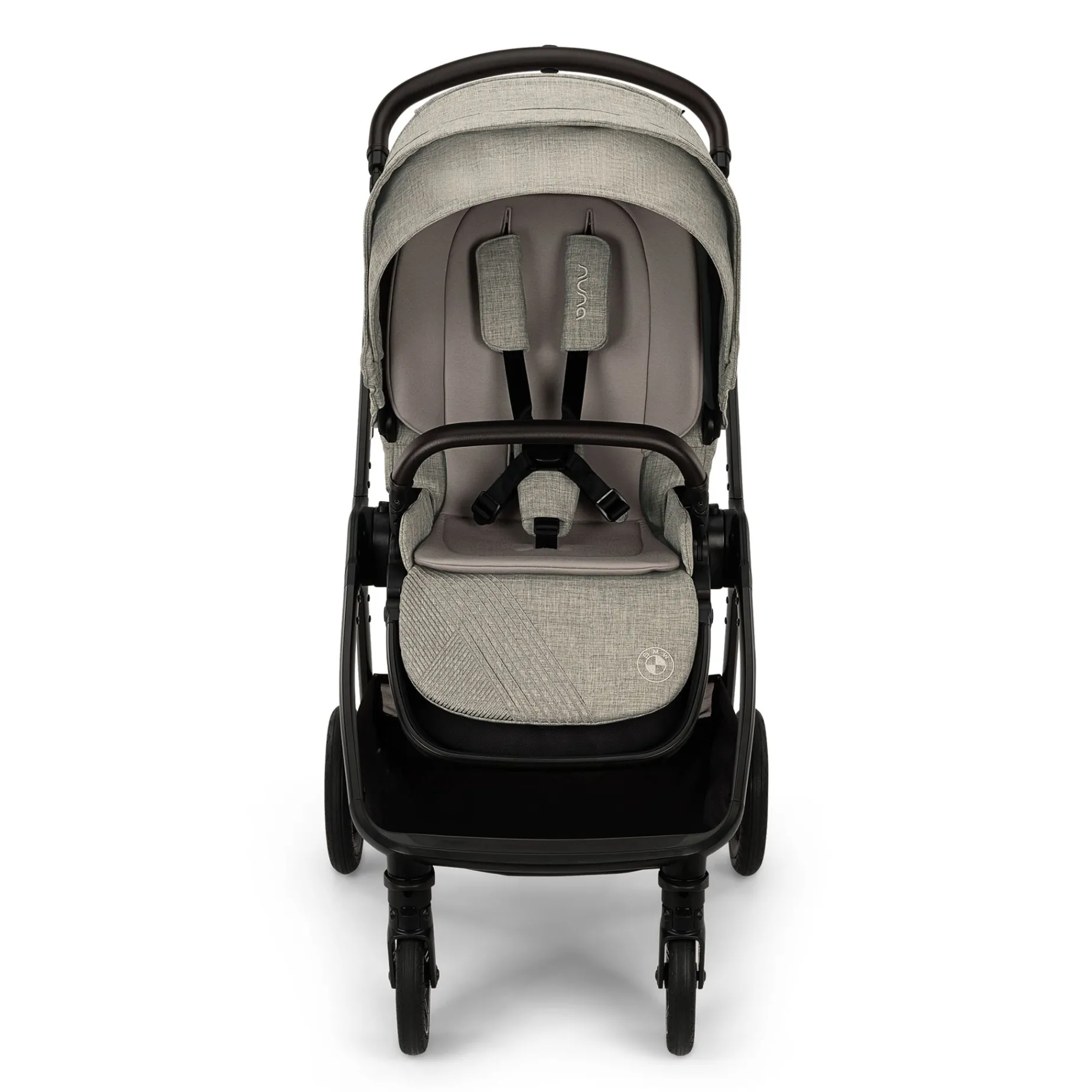 Embroidered BMW logo on calf support and infant insert.