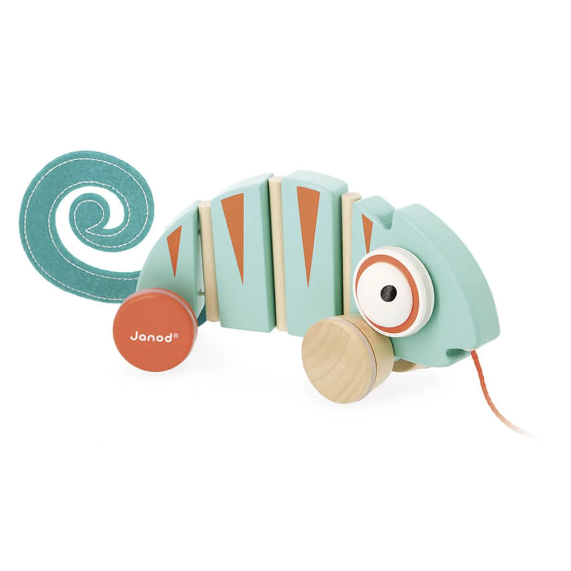Ready for a walk in the tropics? Baby can go on an adventure by walking with this sweet wooden pull-along chameleon. With its rolling eyes and articulated body, this pull-along toy undulates as it rolls along! This will keep children from 12 months old entertained for hours. With its funny appearance and its soft felt tail, this wooden early years toy will delight the whole family! Ideal for encouraging children from one year of age to move around, this cute chameleon will be their companion as they take their first steps. This wooden pull-along toy is made from water-based paint and wood from sustainably managed forests (FSC® certified).