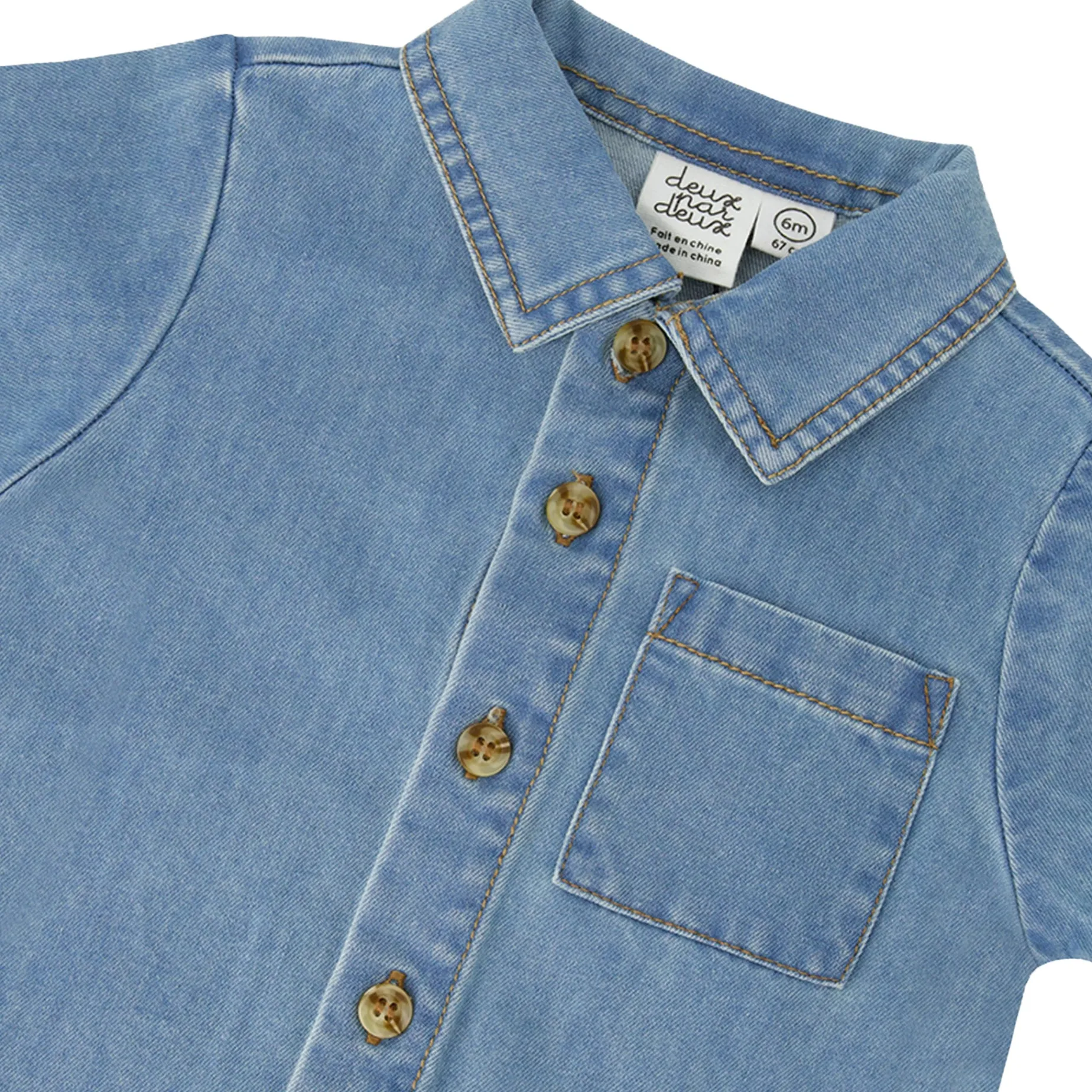 Easygoing charm meets classic style in this chambray top and short set in light blue. The short-sleeved shirt features a button-down front, a chest pocket, and a relaxed fit, paired with matching elastic-waist shorts for all-day comfort. Made from a soft cotton blend, this versatile outfit is perfect for warm-weather outings and playful adventures.