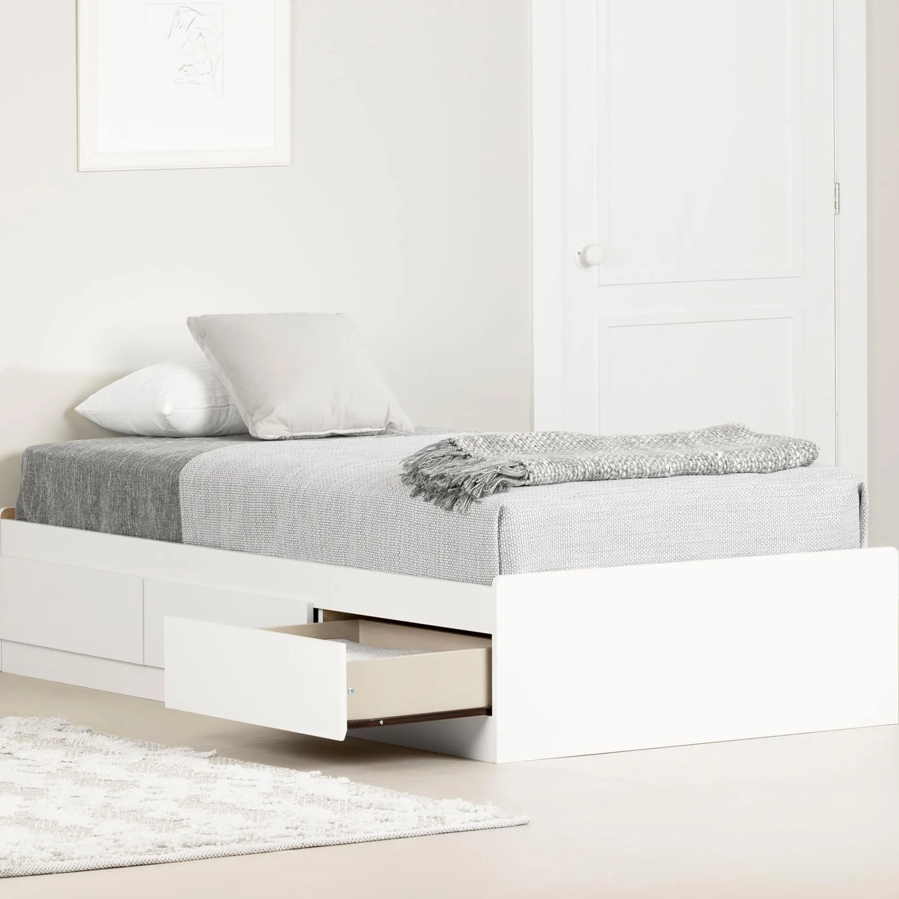Twin Bed with 3 Drawers – Callesto Pure White
