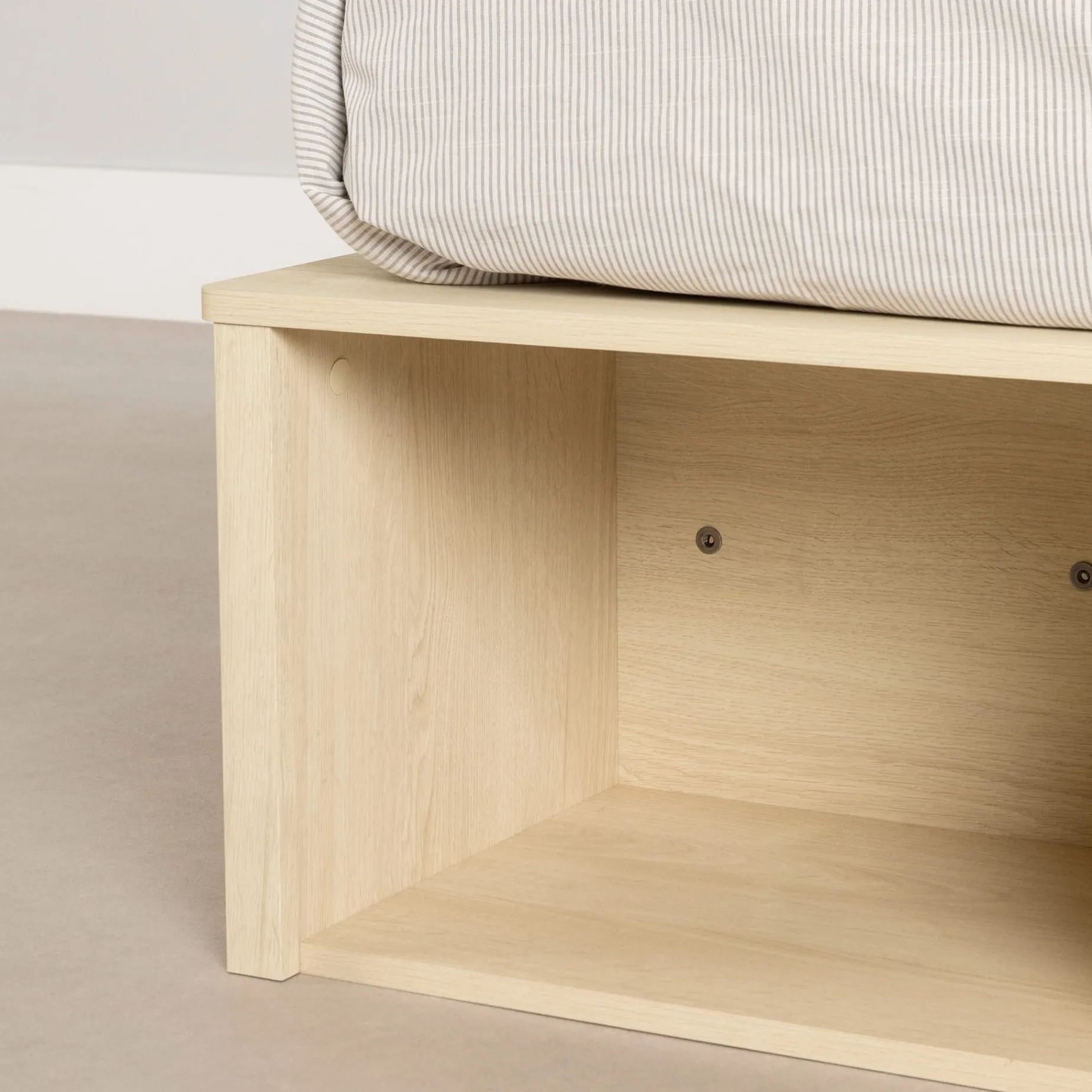 To help with organization, and offer closed storage compartments, 2 wicker baskets are included with the bed. They are designed to fit perfectly into the open spaces. This allows you to play with multiple configurations. For example, you can use the drawers to store clothes, books or shoes.
