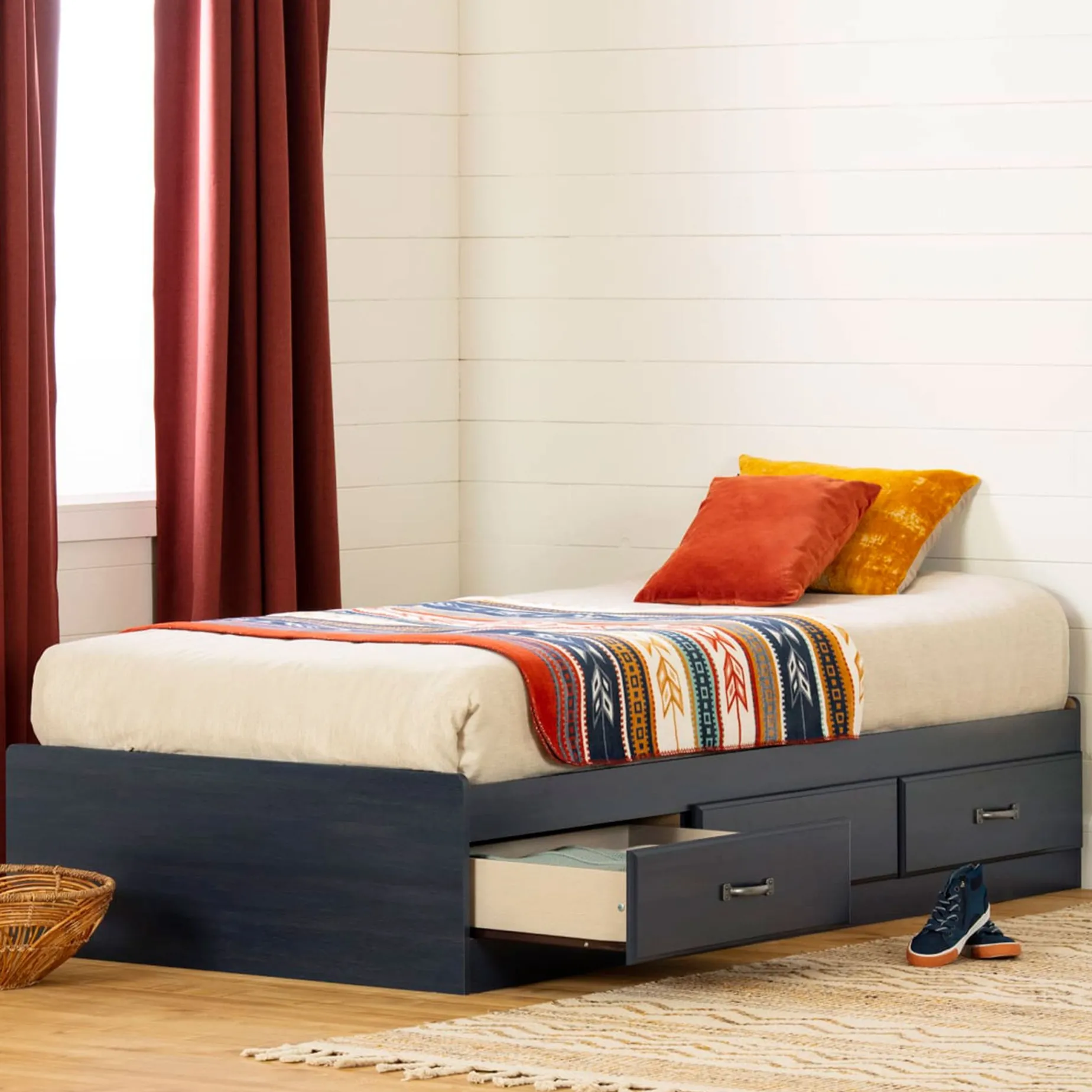 Ulysses Mates Twin Bed with 3 Storage Drawers – Blueberry