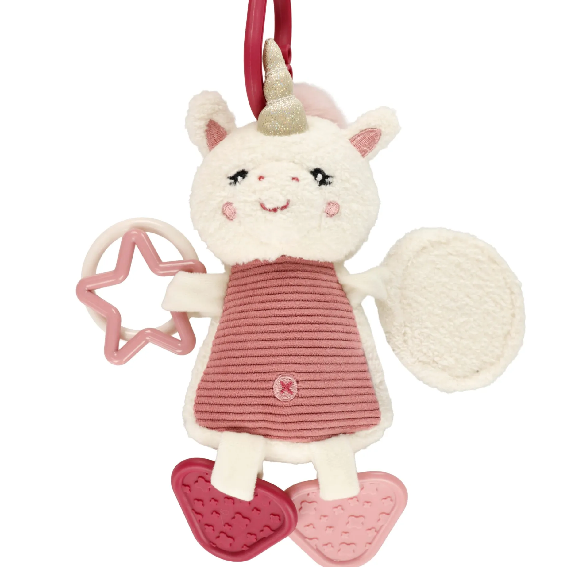 -Plush activity toy in the shape of a unicorn ideal for stimulating baby