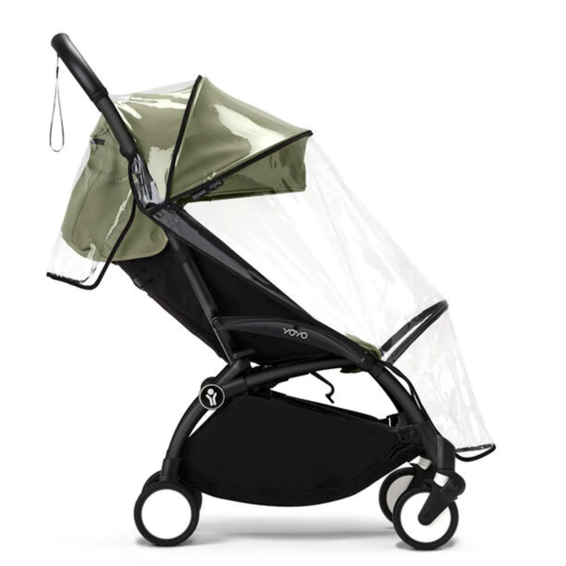 The YOYO Rain Covers provide protection for your child during inclement weather, compatible with the YOYO 0+ newborn pack. They are easy to install and can be quickly stored in the basket when not in use.