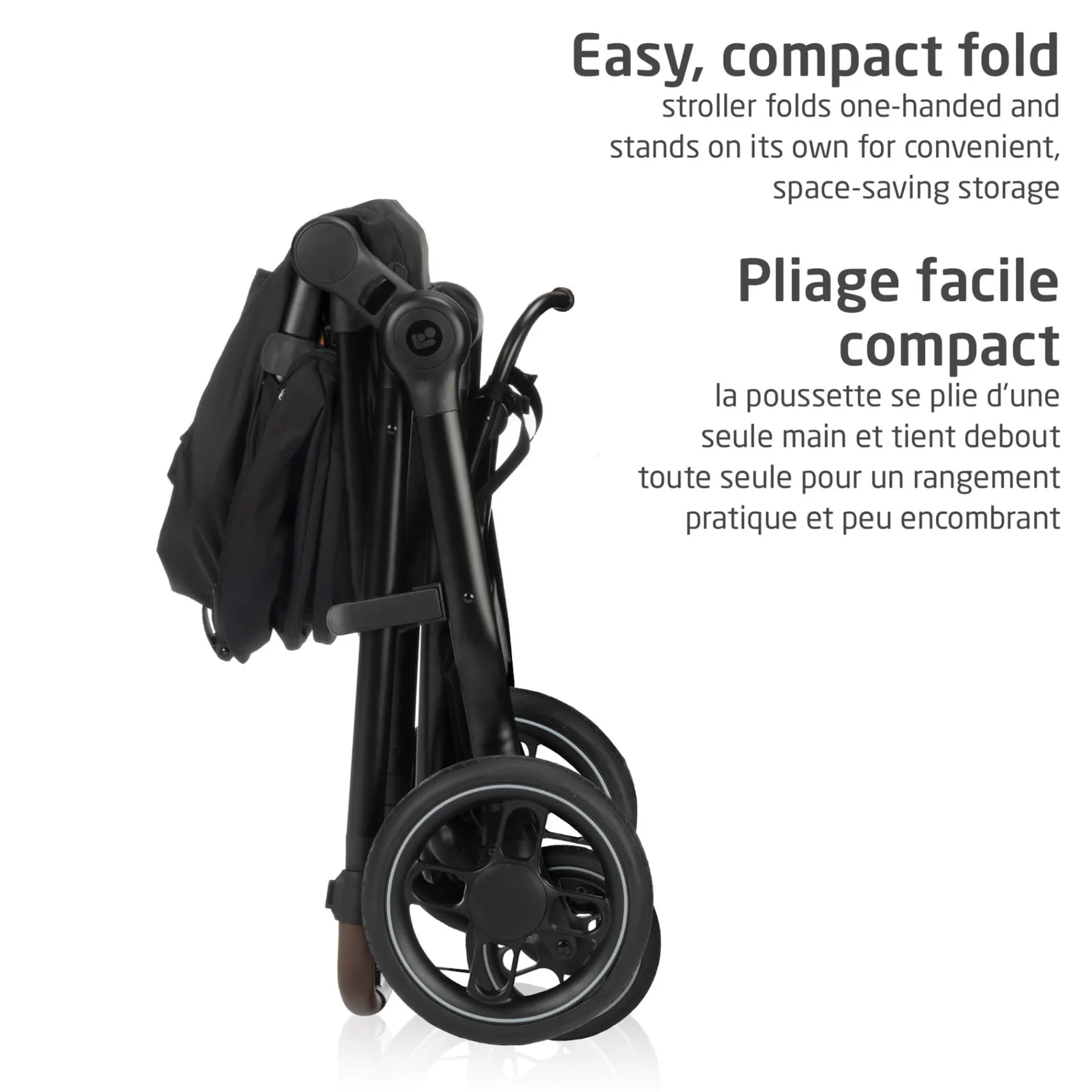 -Self-Standing Fold:Compact fold design allows the stroller to stand upright on its own for convenient and space-saving storage.