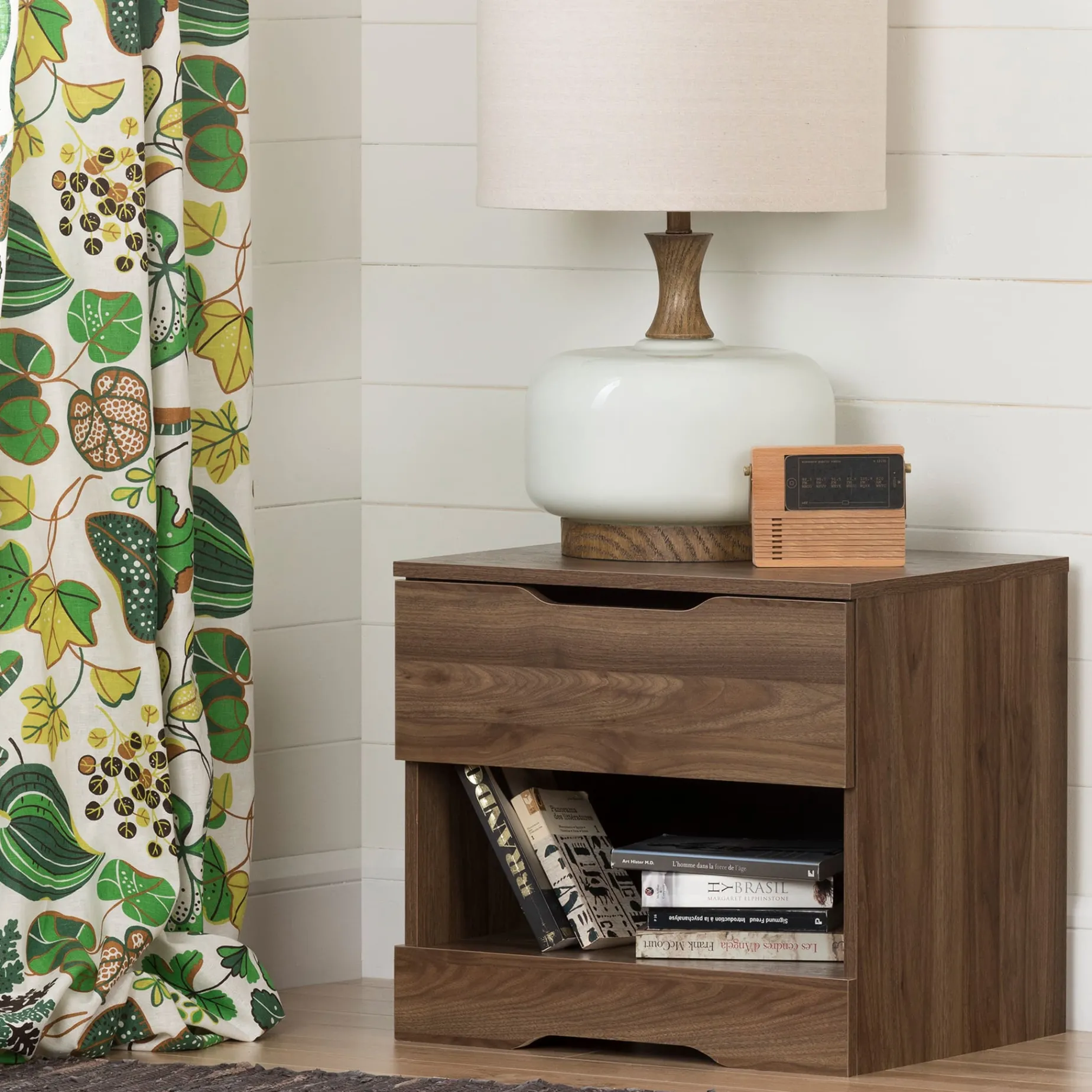 Convenient Storage Featuring an open easy-access storage space ideal for bedside reading materials, the bedroom nightstand also includes a convenient and practical drawer with smooth metal drawer slides and a stylish cut-out handle. The open bottom storage is the perfect place to store smaller personal items for easy access, while the drawer is suitable for clothing or accessories.