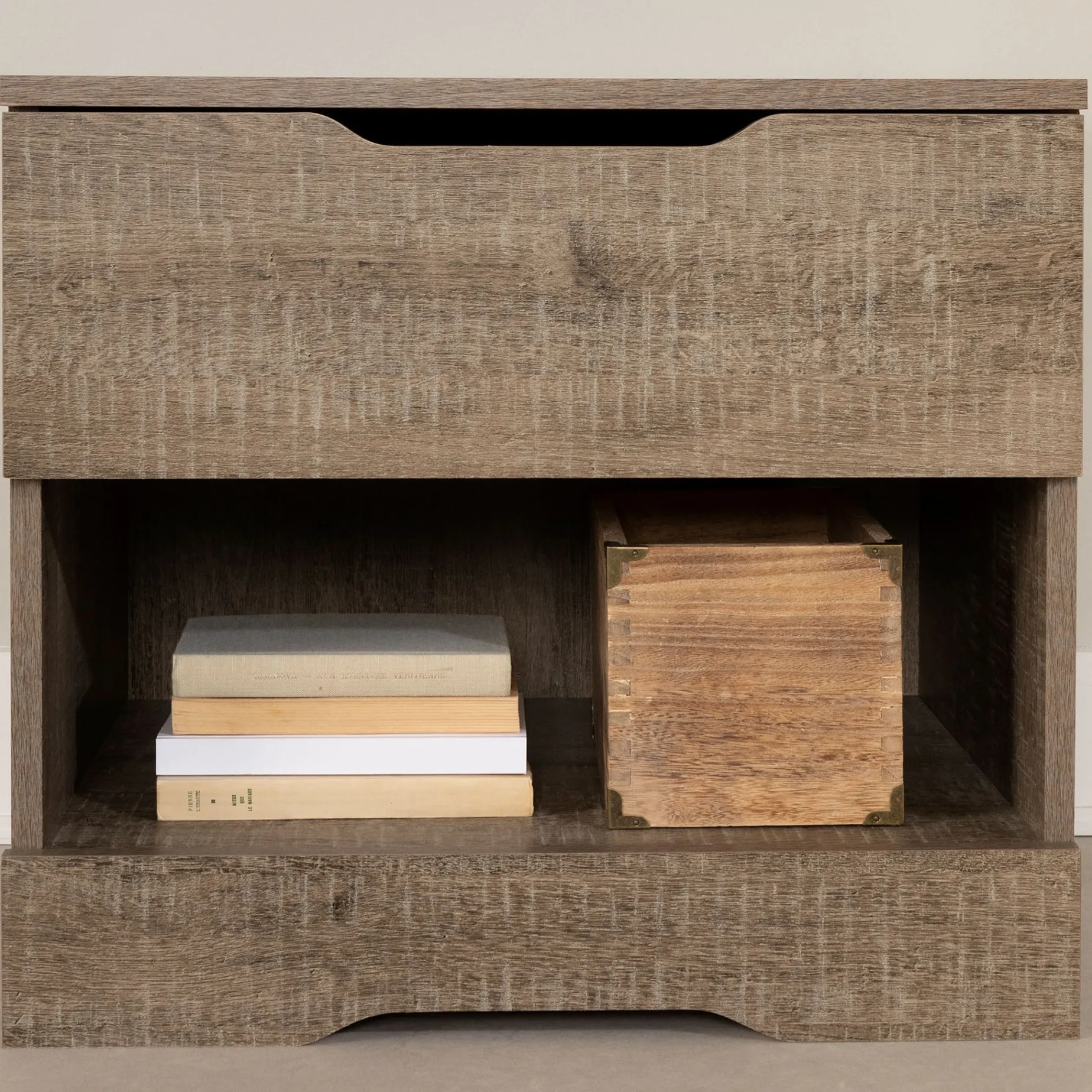 Convenient Storage Featuring an open easy-access storage space ideal for bedside reading materials, the bedroom nightstand also includes a convenient and practical drawer with smooth metal drawer slides and a stylish cut-out handle. The open bottom storage is the perfect place to store smaller personal items for easy access, while the drawer is suitable for clothing or accessories.