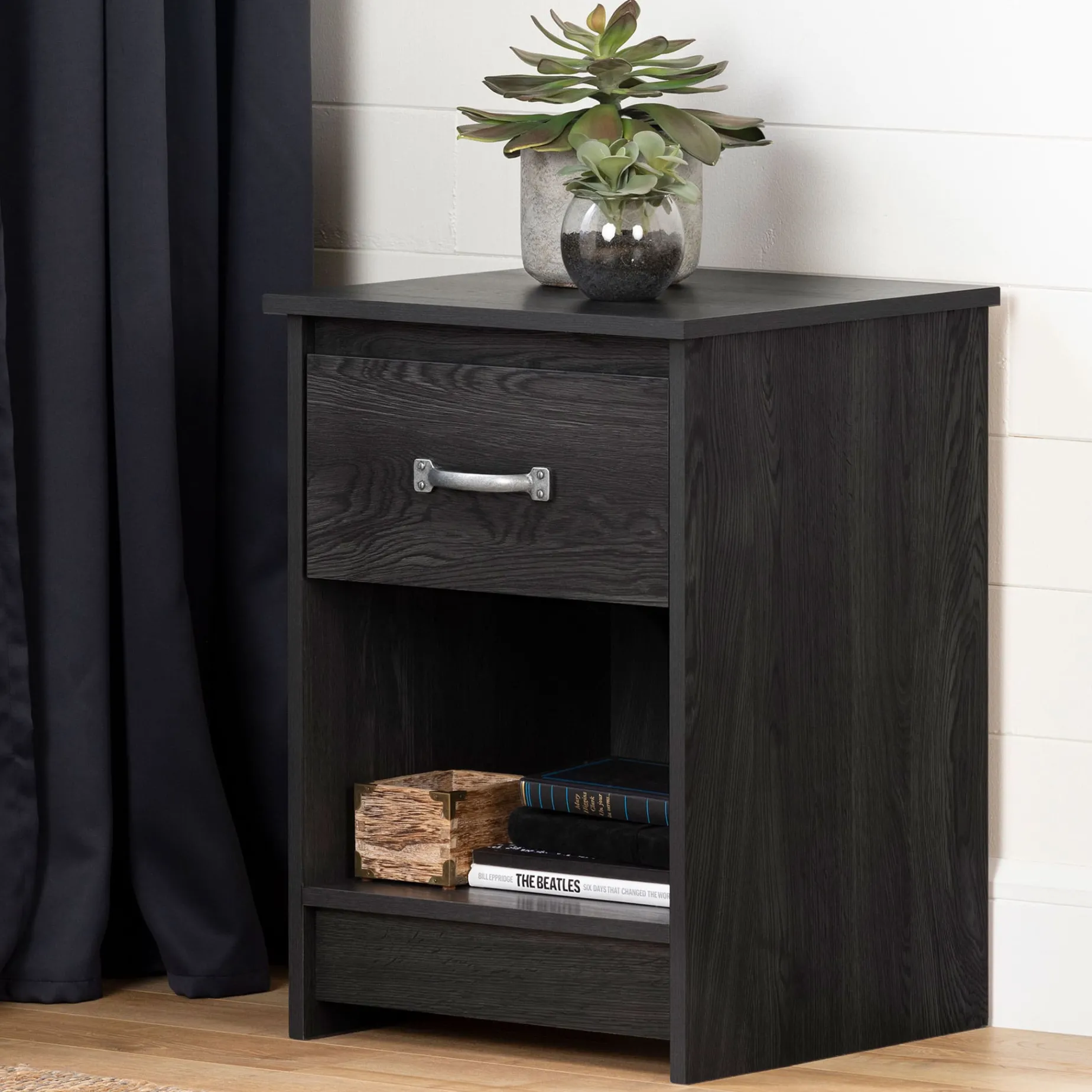 The open space on this night stand gives you easy access to your favorite books and magazines while you’re relaxing in bed. The drawer near the top is great for keeping your glasses and electronics. And there’s lots of room on the surface for a bedside lamp and decorative items. Happy bedside reading!