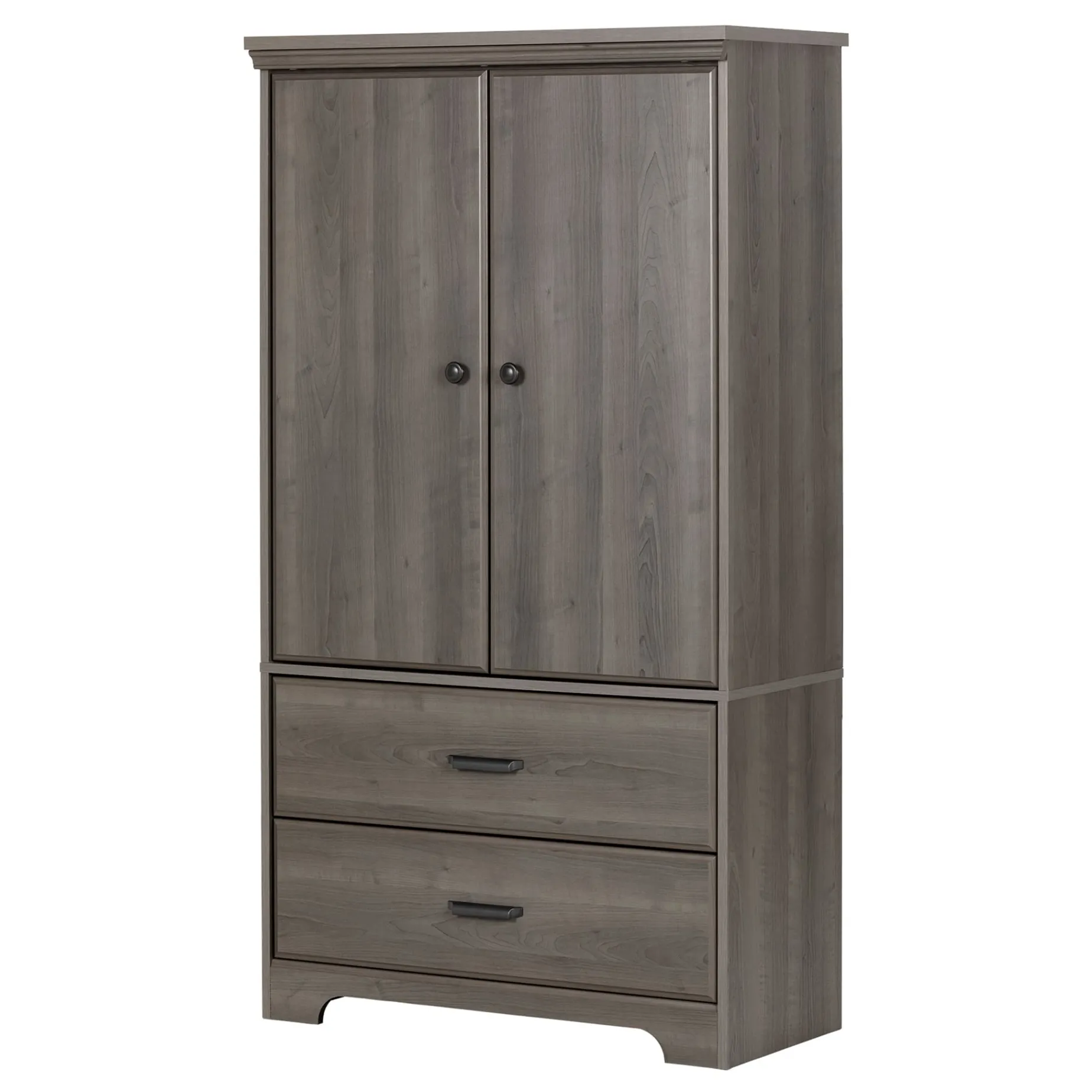 – LARGE STORAGE CAPACITY: You’ll find four compartments, separated by three adjustable shelves, behind the two doors of this armoire. Add the two roomy drawers, and this piece can hold a lot!