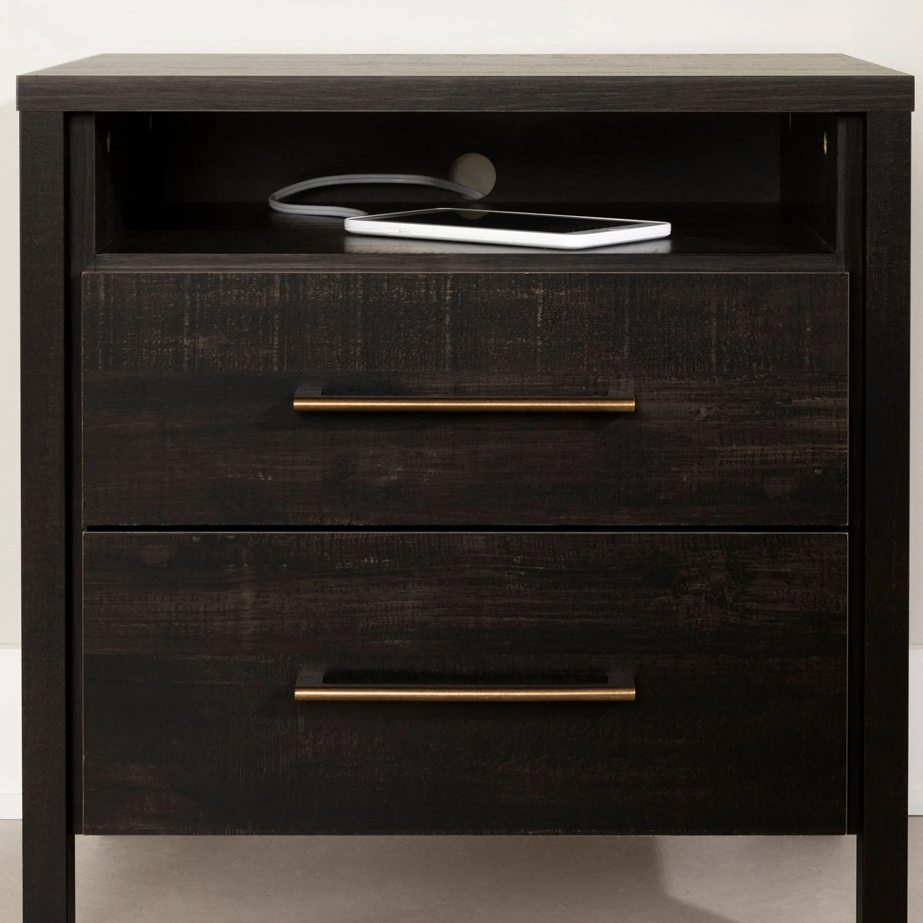 OPEN AND CLOSED STORAGE: What makes this nightstand so amazing? The well thought out storage spaces. The open space can be useful for keeping some items – like a book or a cell phone – close at hand… and you can use the two drawers to store light clothing and accessories.