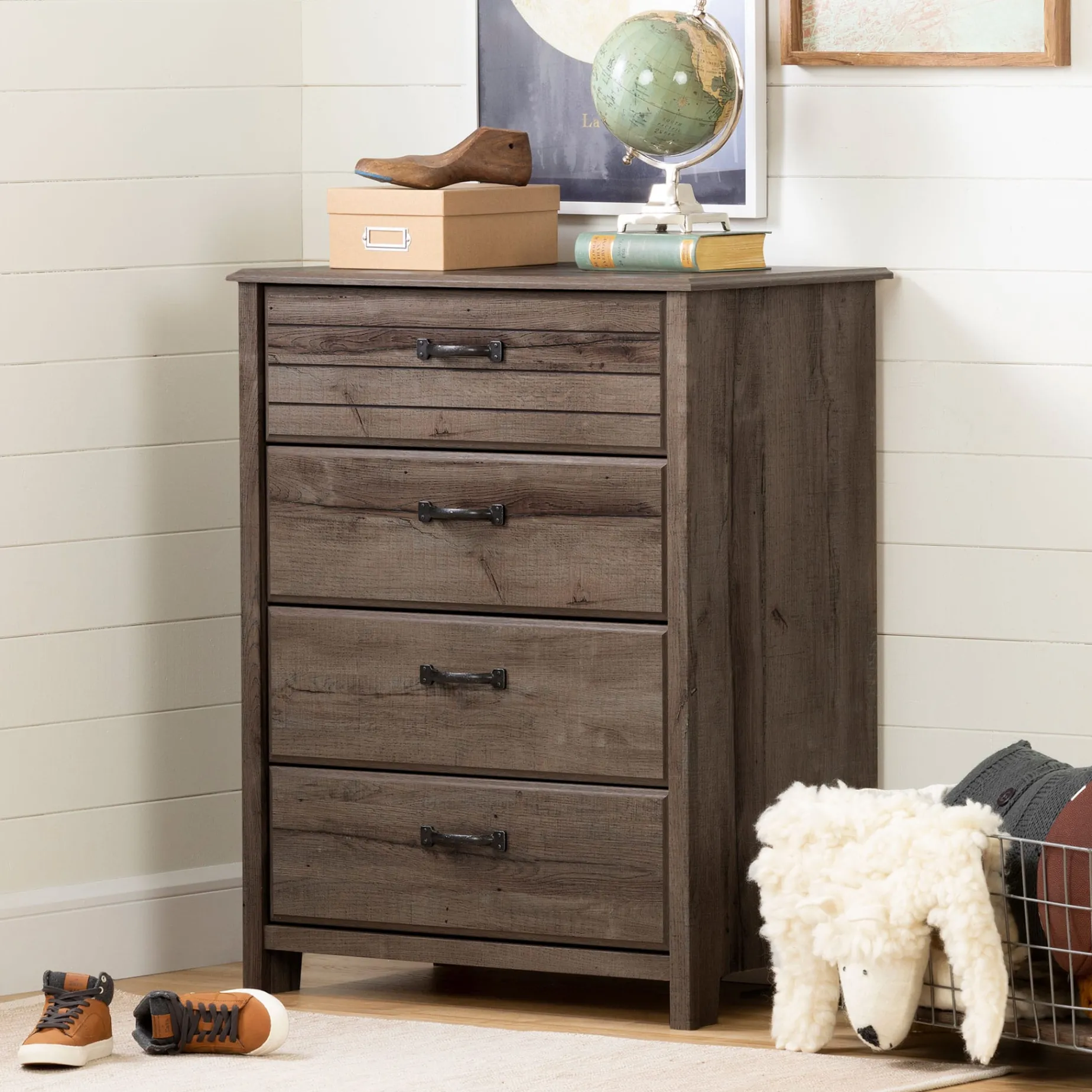 -The 4-drawer dresser features traditional design accented by the timeless finish and metal handles. The clean lines and the decorative top drawer will blend with any bedroom décor or furniture