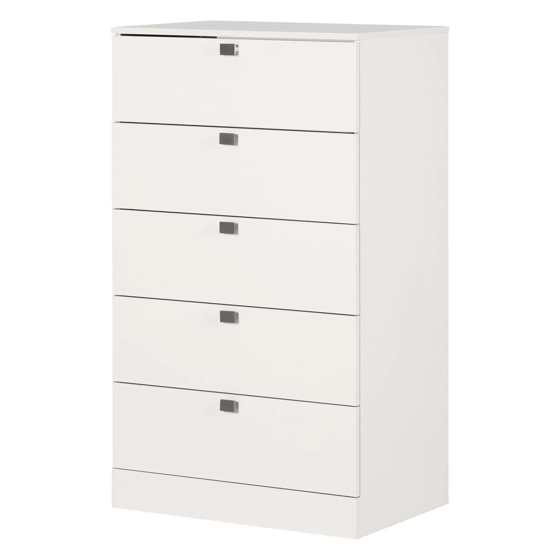TALL STORAGE SOLUTION: Store your little one’s clothes in the 5 large drawers of this chest. This piece of furniture frees up floor space, enlarging the play area!