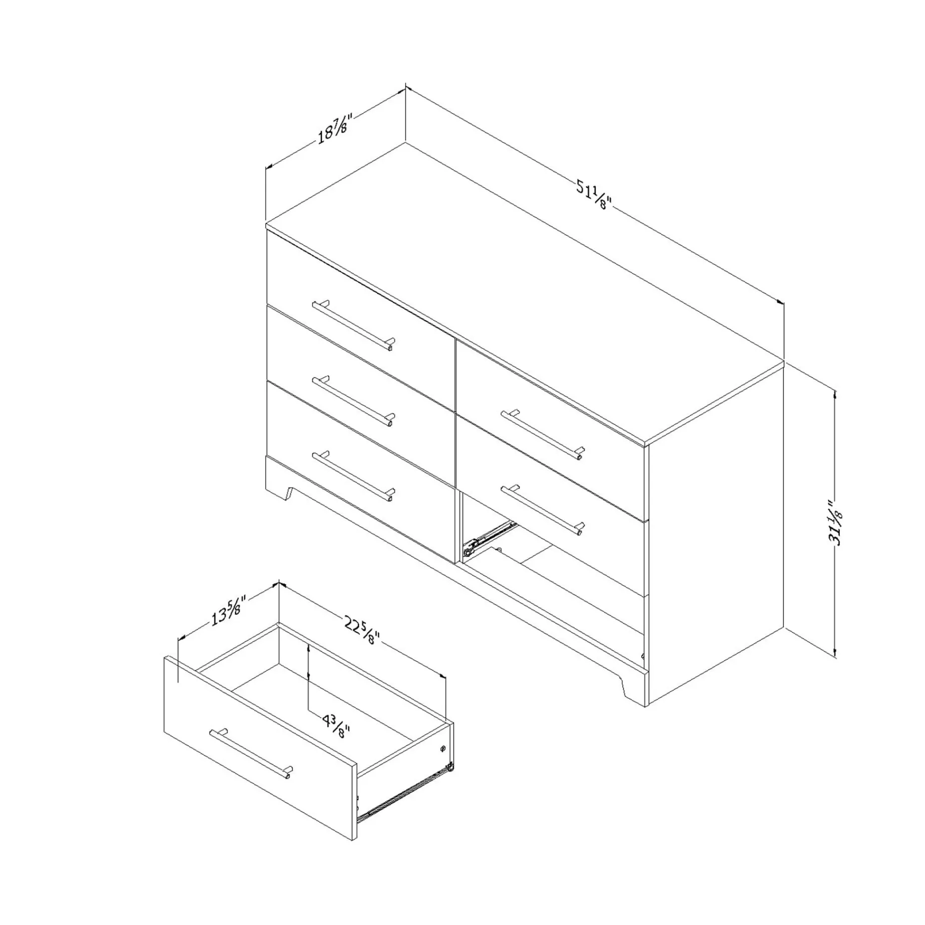 Practical Storage And Organization With large drawers, this dresser from the Primo Collection was designed just for tighter spaces! Featuring 6 large drawers with detailed metal handles, the dresser provides plenty of room for clothes, linens or general storage keeping your space organized and neat. Included with metal slides for easy and quiet use, there’s no wrestling required to access your belongings.