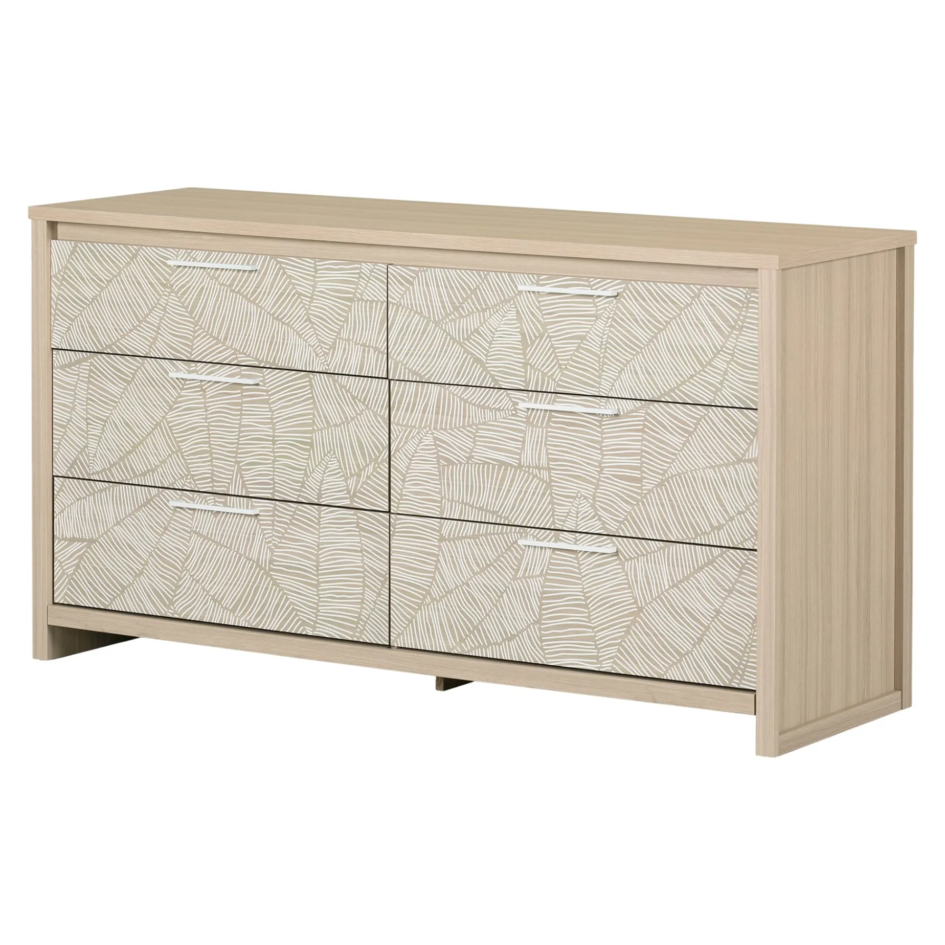-TROPICAL TOUCH: Create a personalized room with this 6-drawer double dresser featuring a tropical foliage pattern.
